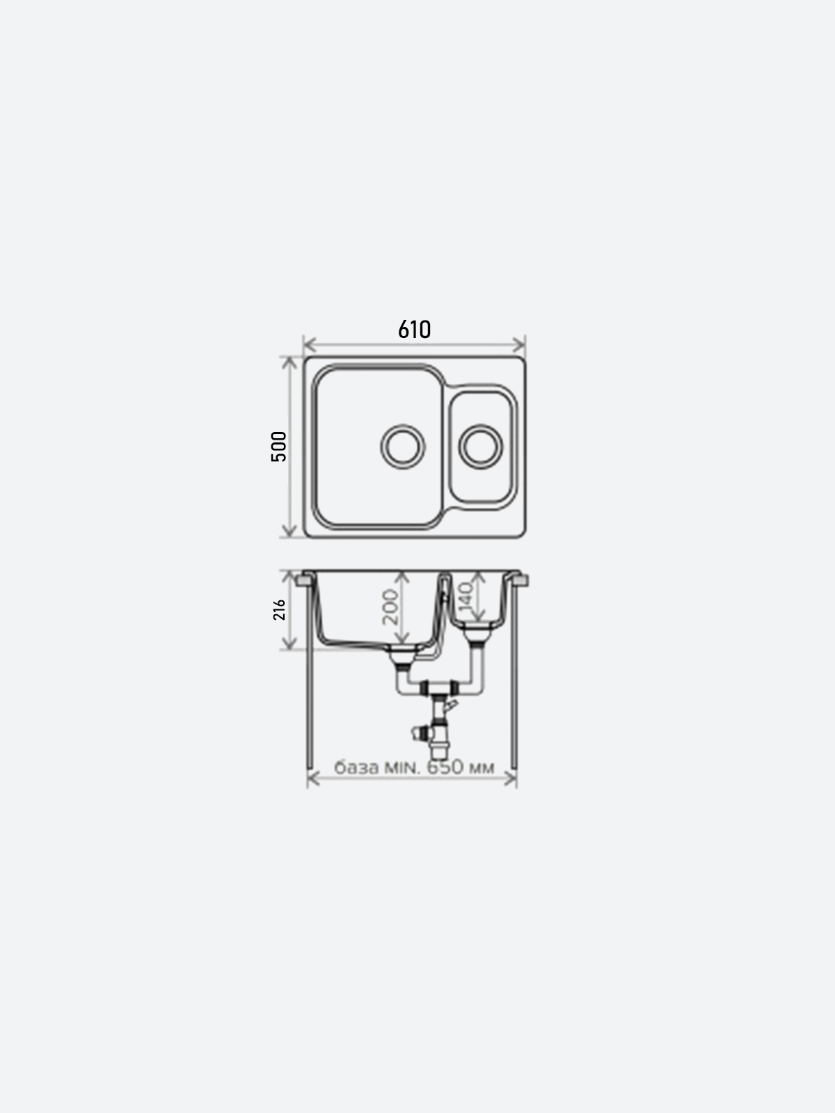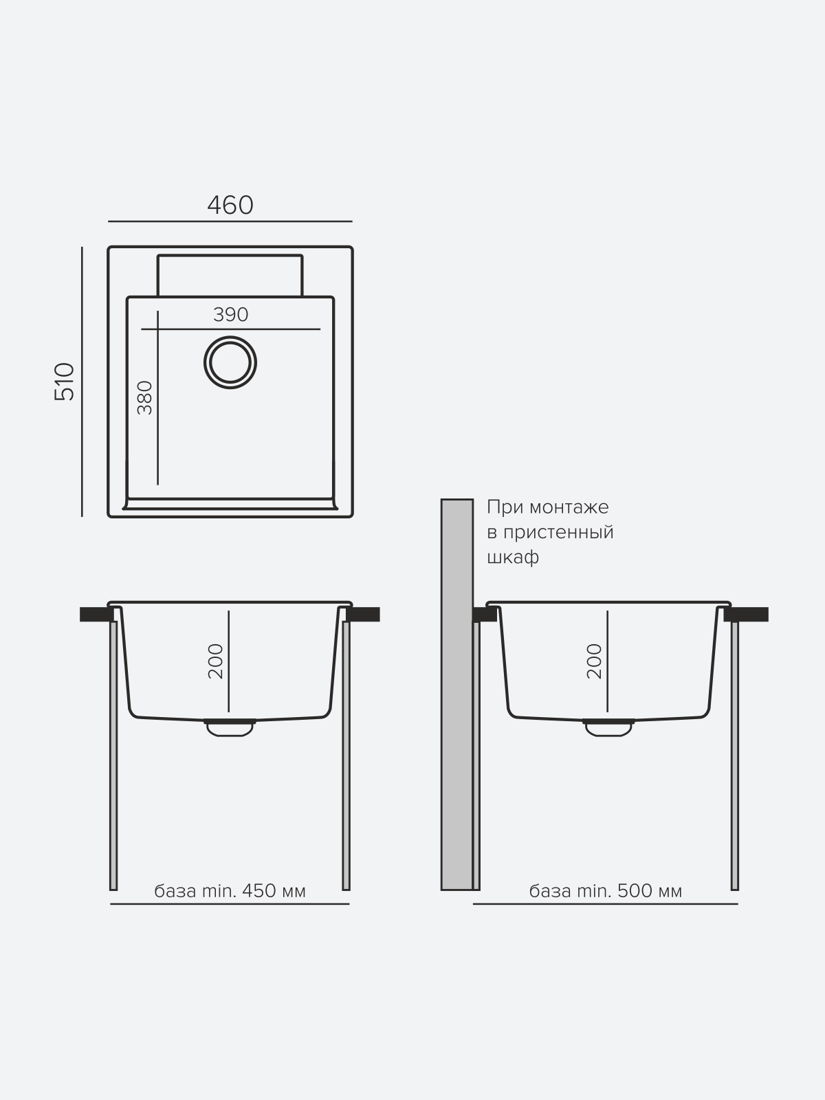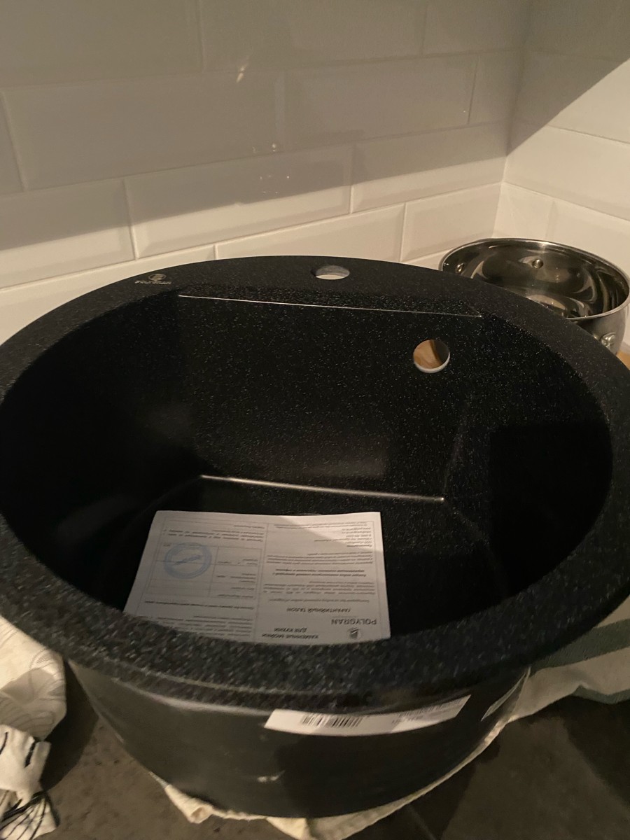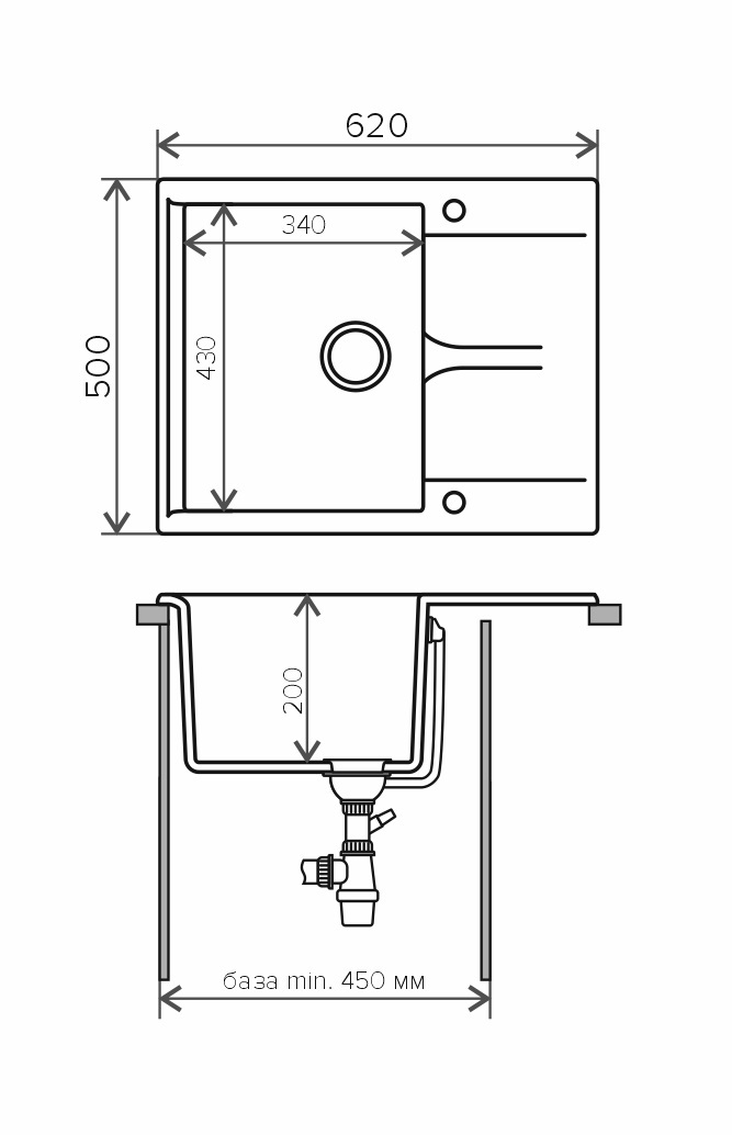 Мойка POLYGRAN, мрамор, ATOL-460, (460x200 мм), черный, сифон и сливная арматура
