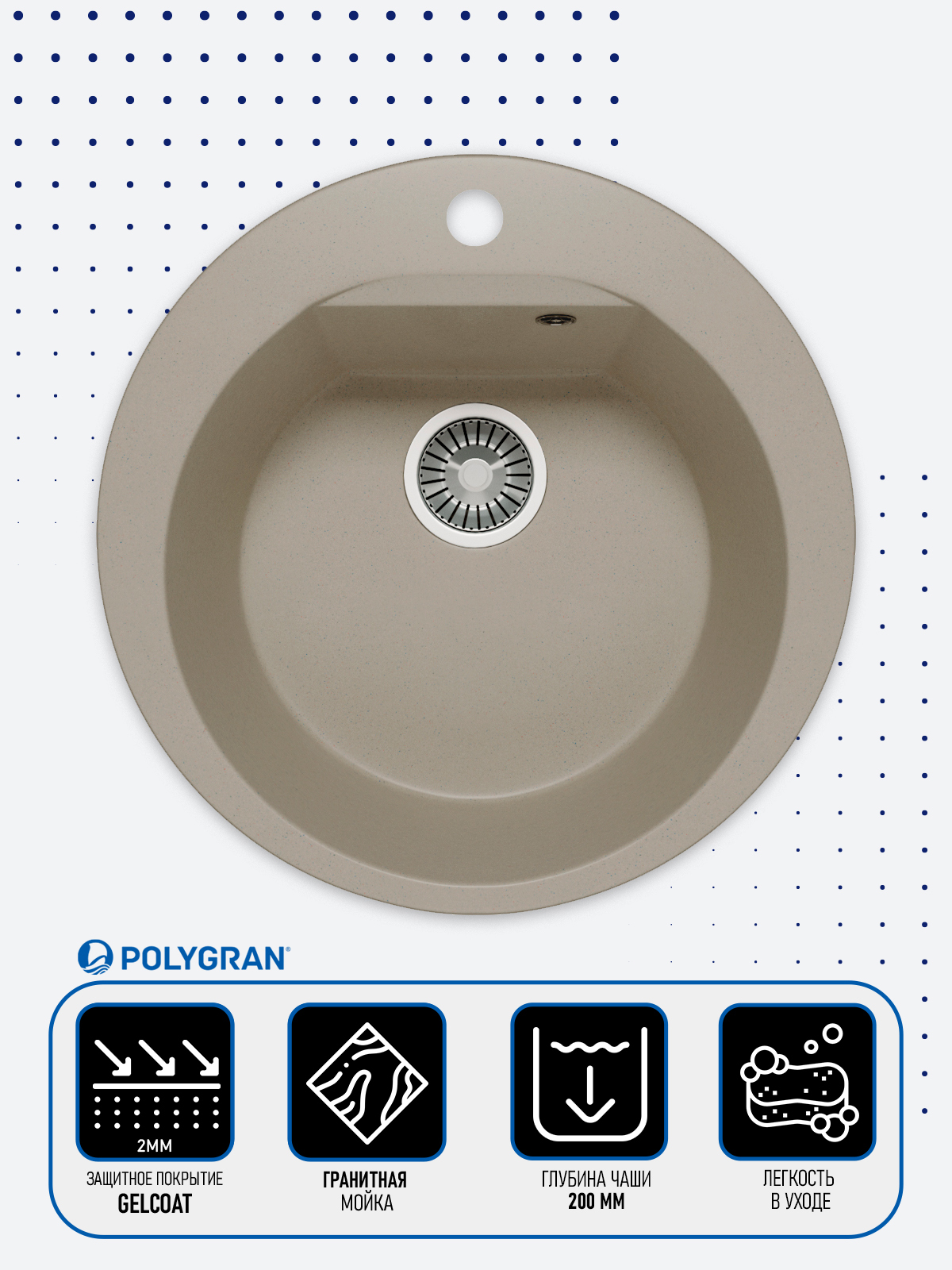 Мойка кухонная POLYGRAN Atol-460 Песочный 302