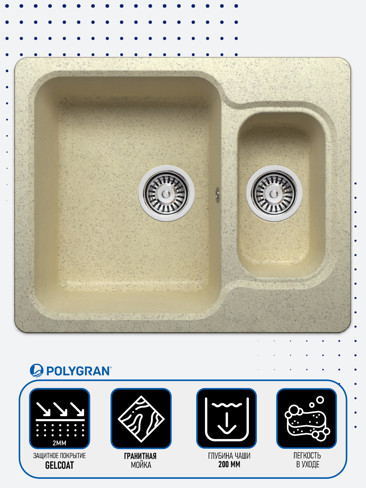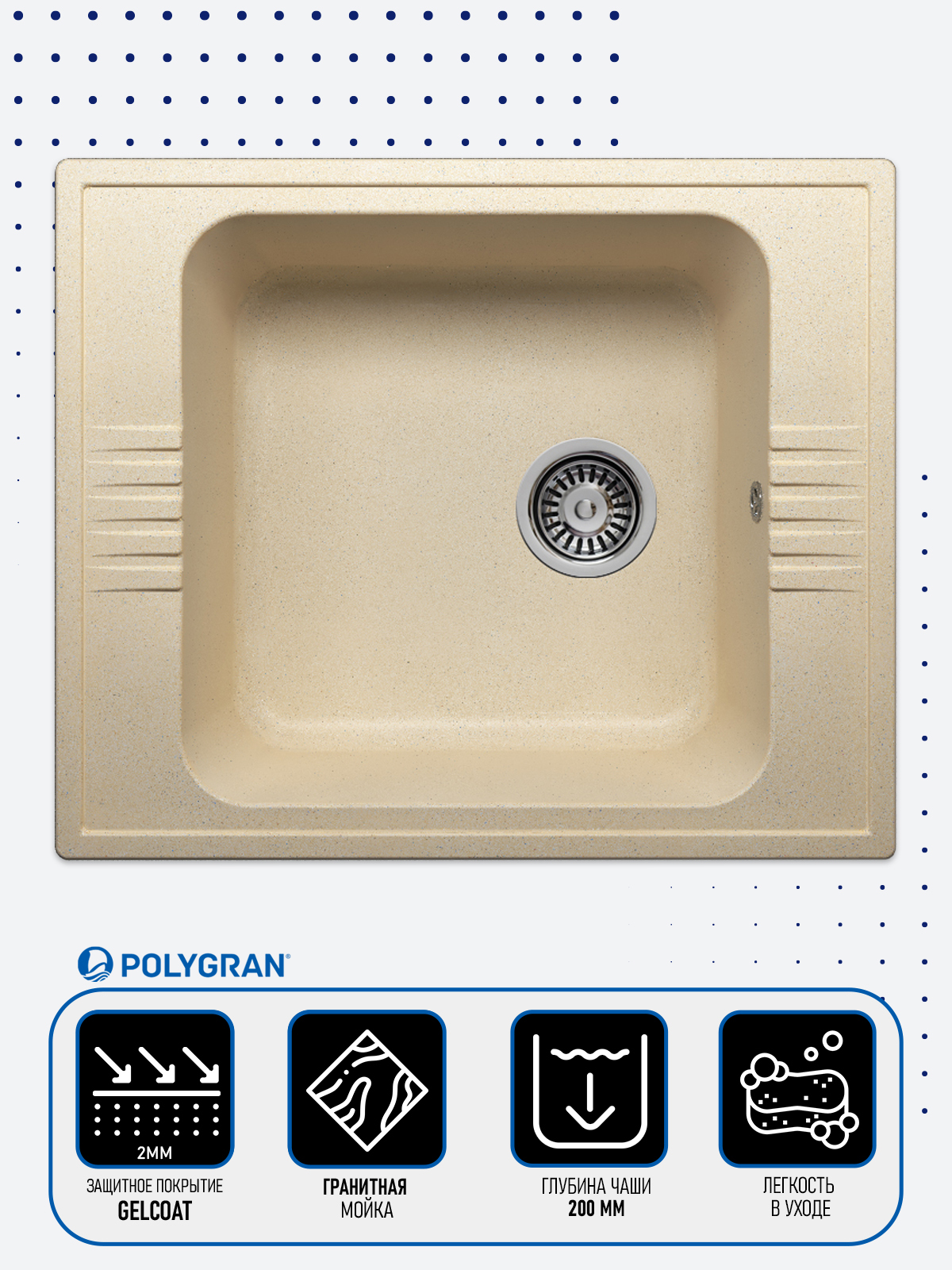 Мойка кухонная POLYGRAN Gals-620 Песочный 302