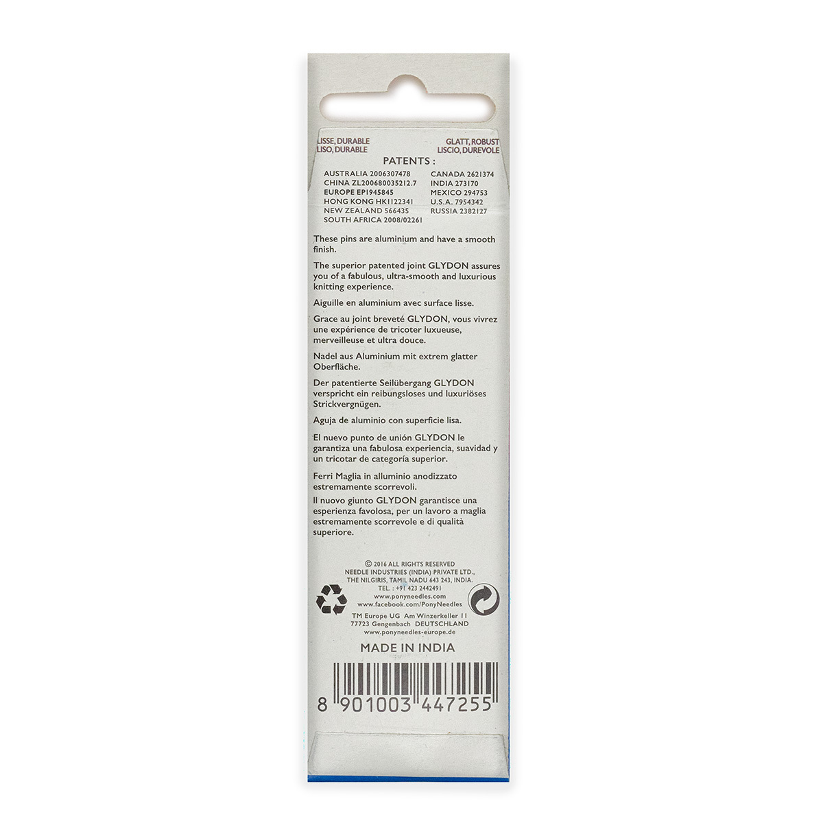 Крючок вязальный PONY, 2,75 мм х 15 см, алюминий