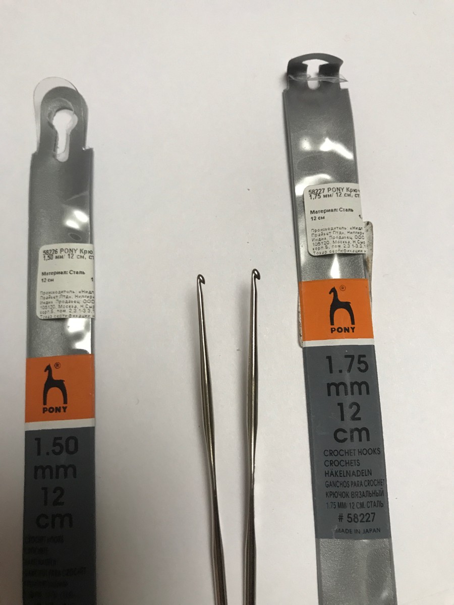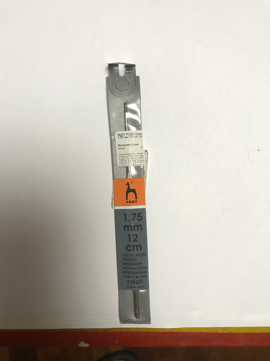 Крючок для вязания "Pony", металлический, диаметр 1,75 мм, длина 12 см