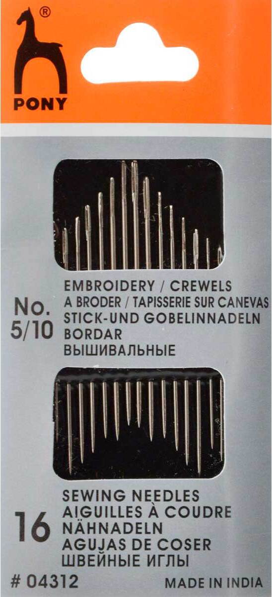 Иглы для вышивания и шитья PONY, № 5-10, 16 шт/упак