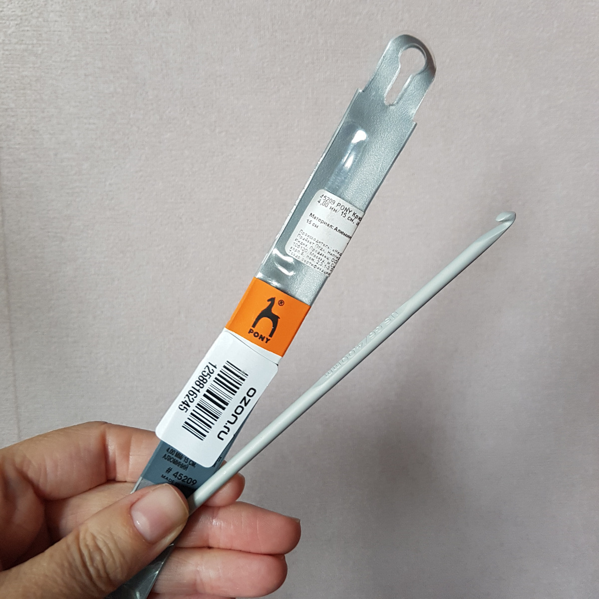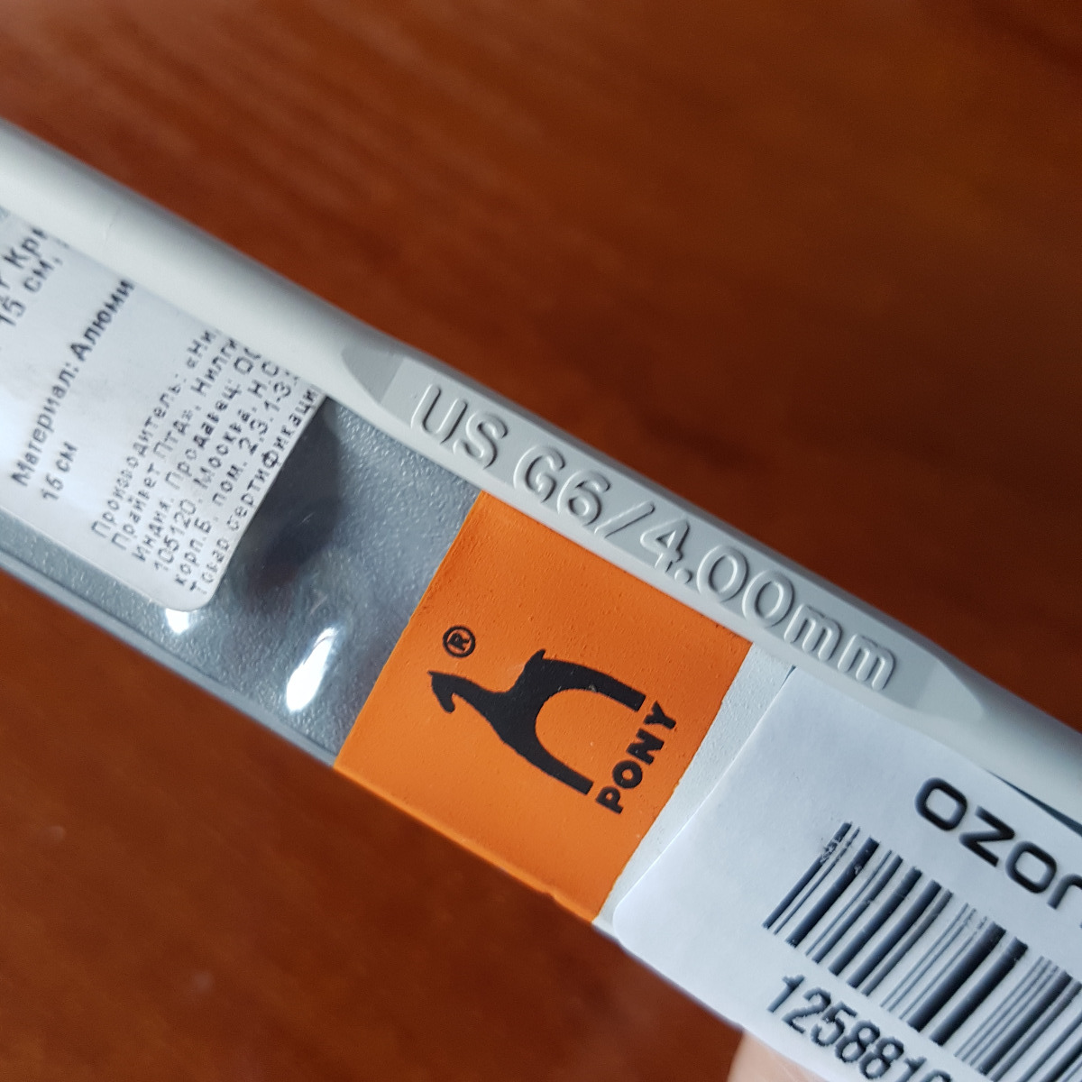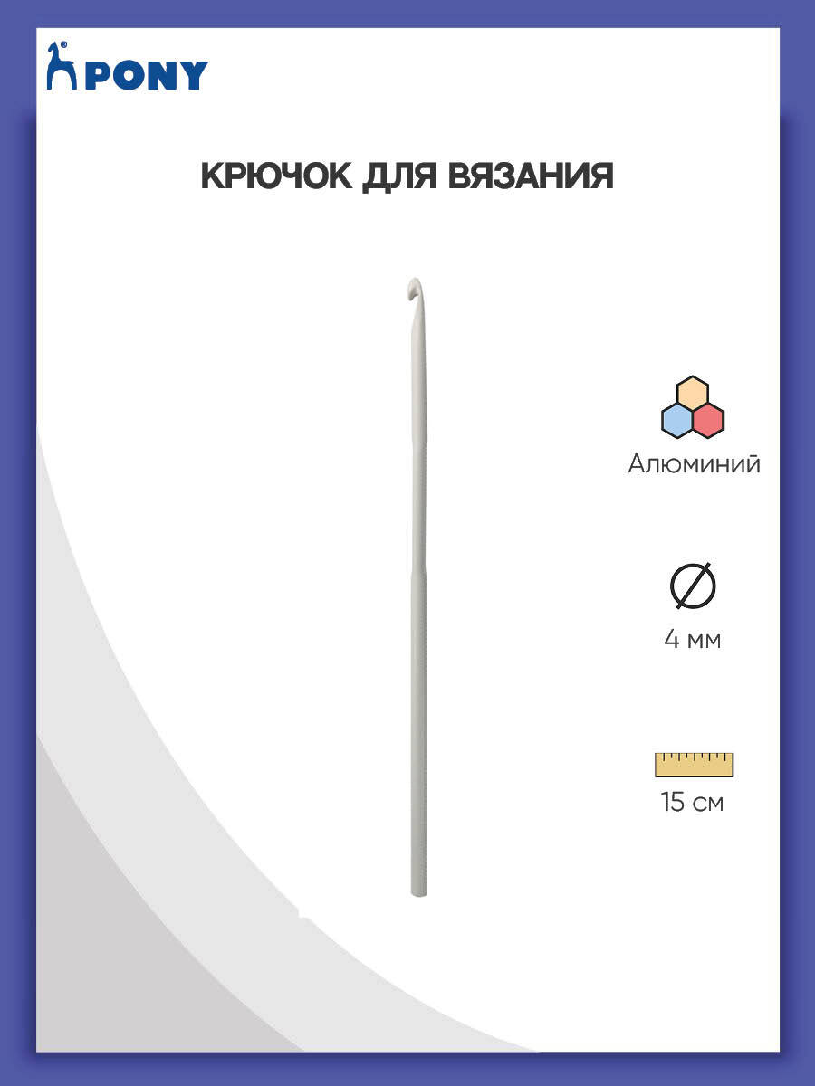 Крючок вязальный PONY, d 4 мм, длина 15 см, 45209