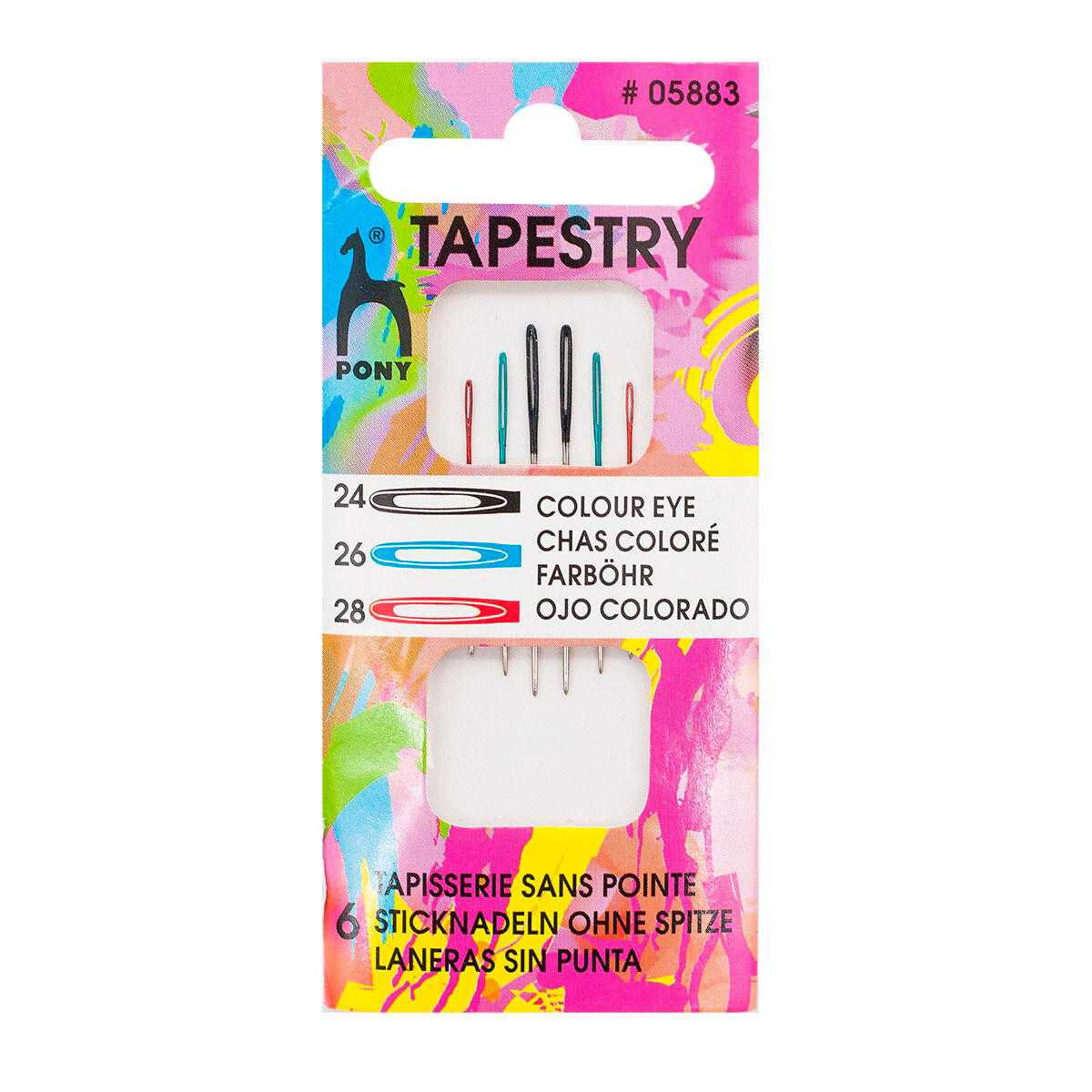 Иглы для гобеленовых и трикотажных тканей цветные, размер 24/28, (6 шт) PONY