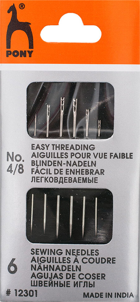Иглы с упрощенным вдеванием PONY, № 4-8, 6 шт/упак