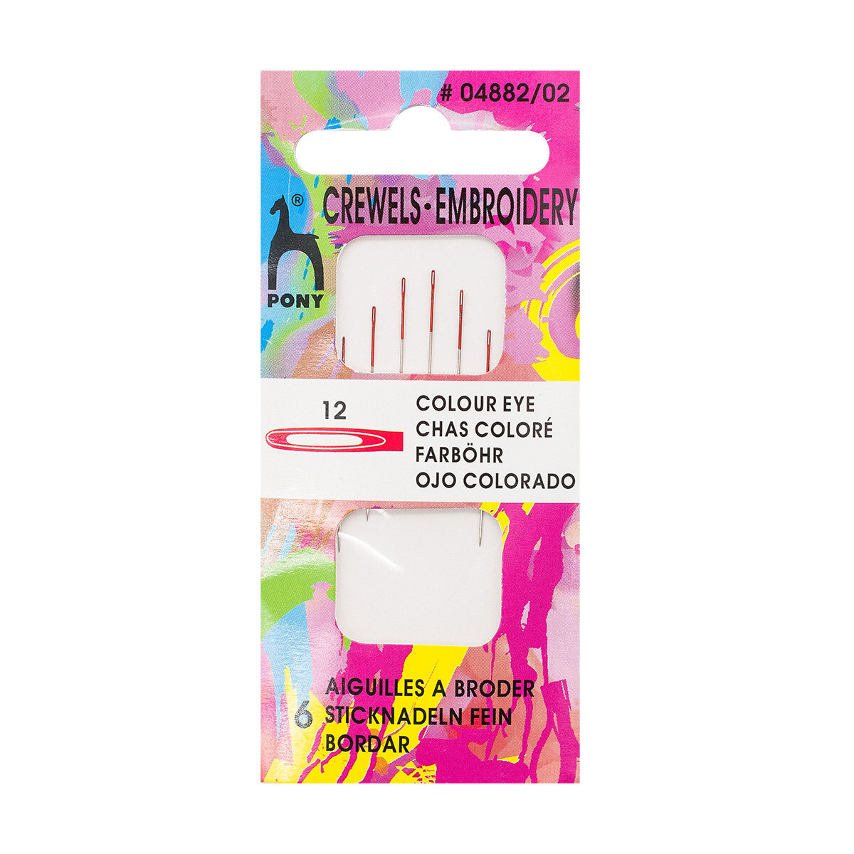 Иглы для вышивания с цветным ушком, размер 12, (6 шт) PONY