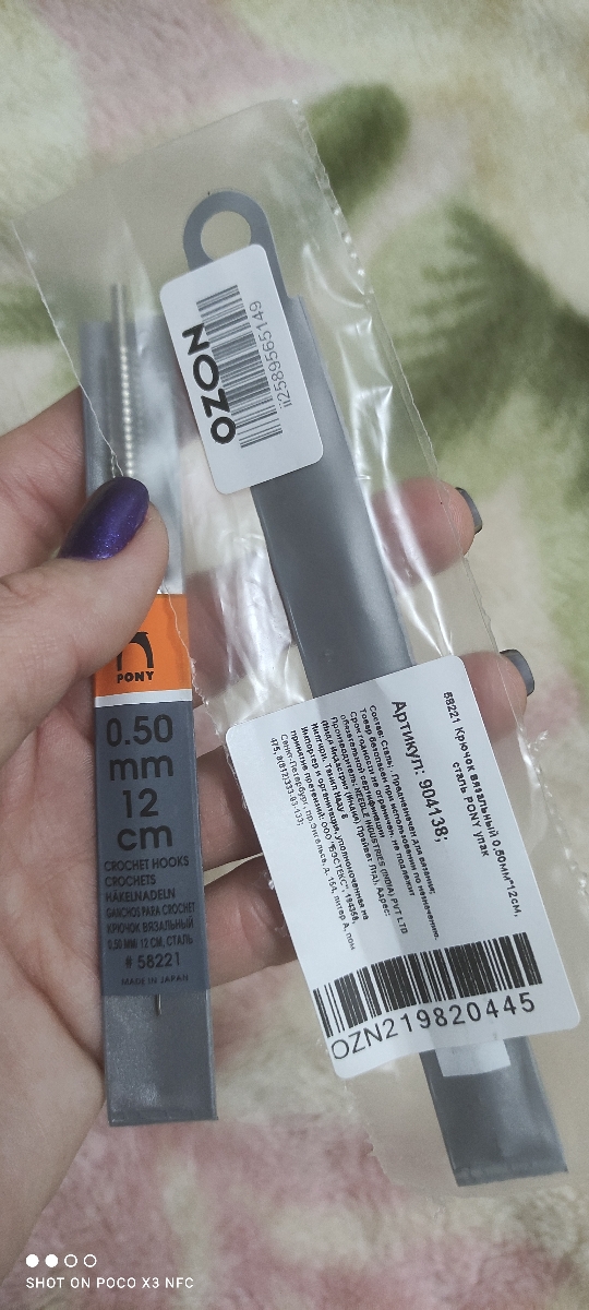 Крючок вязальный, 0,75мм*12см, сталь, PONY