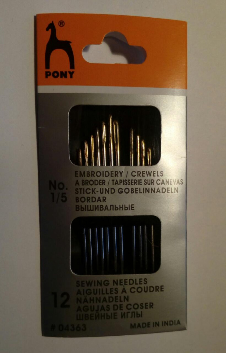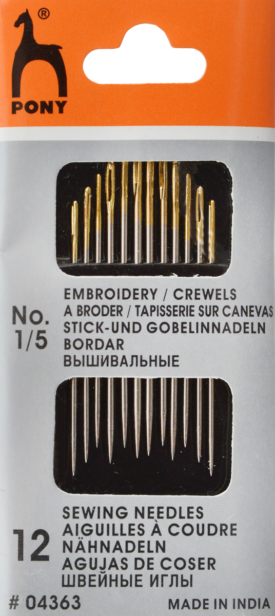 Иглы ручные "Pony", для вышивания и шитья, с золотым ушком, №1/5, 12 шт