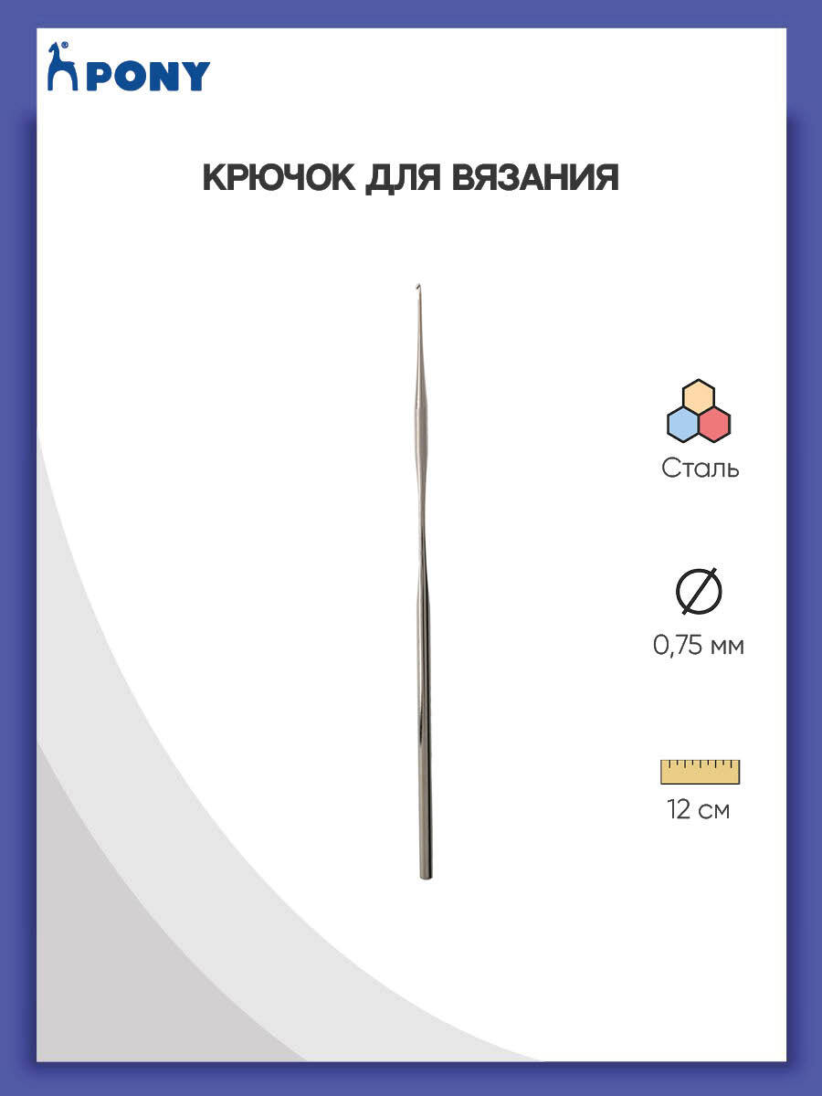 Крючок для вязания "Pony", металлический, диаметр 0,75 мм, длина 12 см