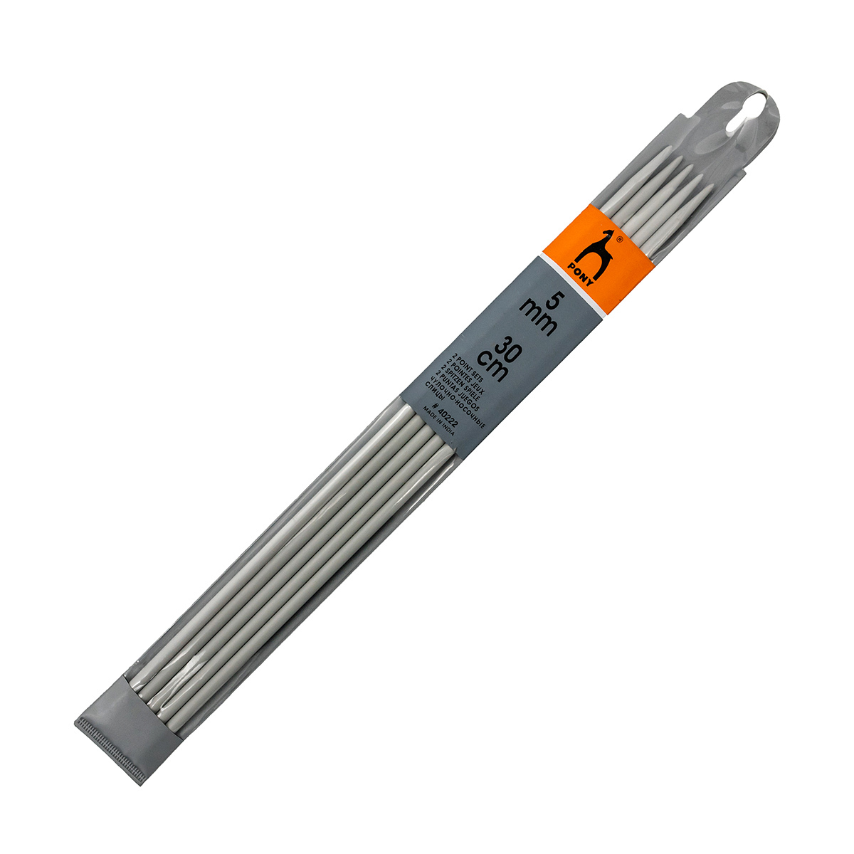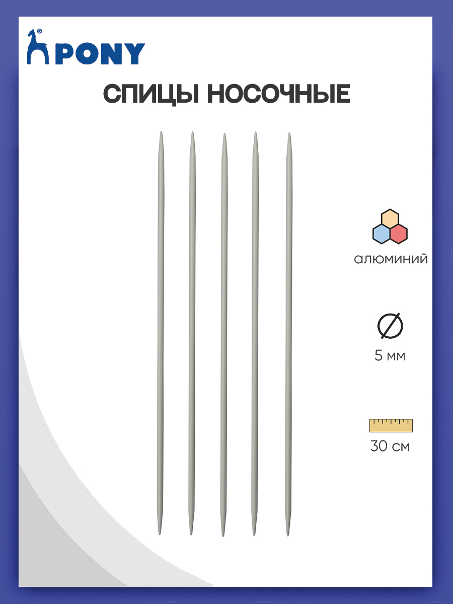 Спицы чулочные Pony, алюминиевые, прямые, диаметр 5 мм, длина 30 см, 5 шт