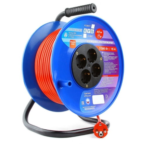 Power Cube Удлинитель на катушке 16А/3,5кВт, 4 розетки с/з, 40м