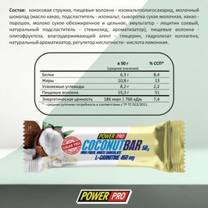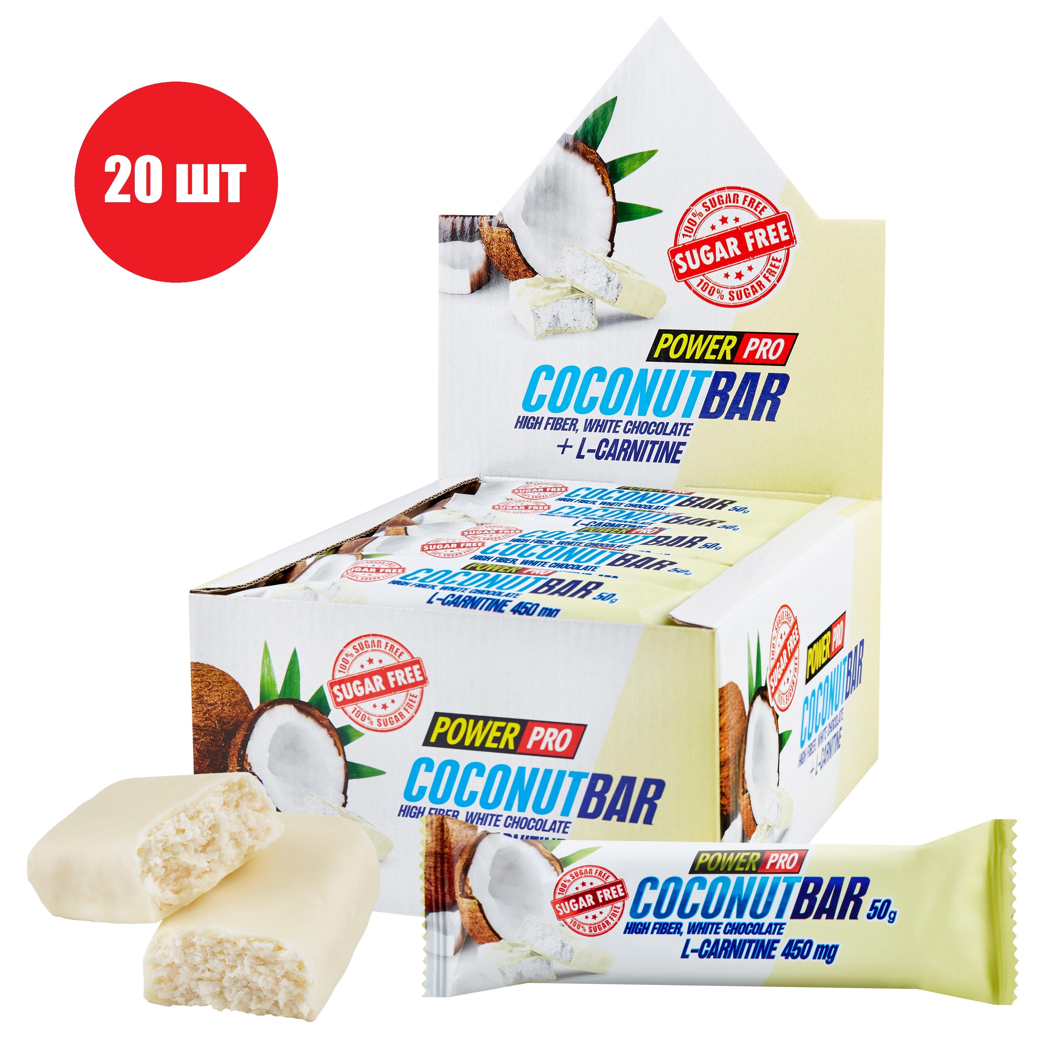 Кокосовый батончик POWER PRO, с кокосовой стружкой без сахара, 50г (х20)
