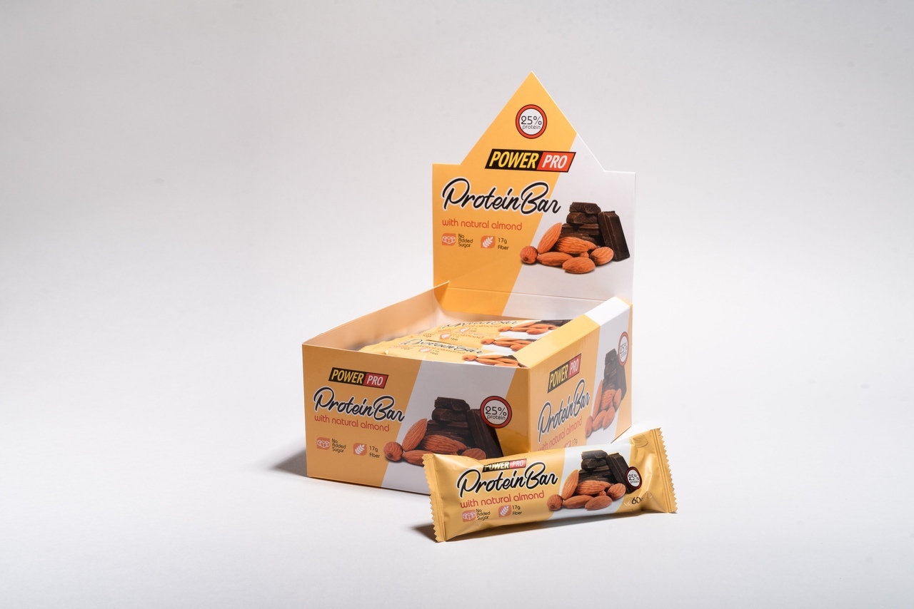 БАТОНЧИКИ 25% БЕЛКА БЕЗ САХАРА С ОРЕХАМИ МИНДАЛЯ В ШОКОЛАДЕ, 60 Г