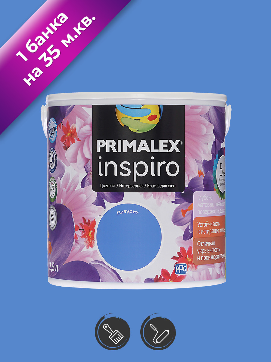 Краска PPG Primalex Быстросохнущая, Акриловая, Матовое покрытие, синий