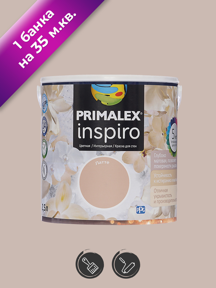 Краска PPG Primalex Быстросохнущая, Акриловая, Матовое покрытие, 2.5 л, бежевый