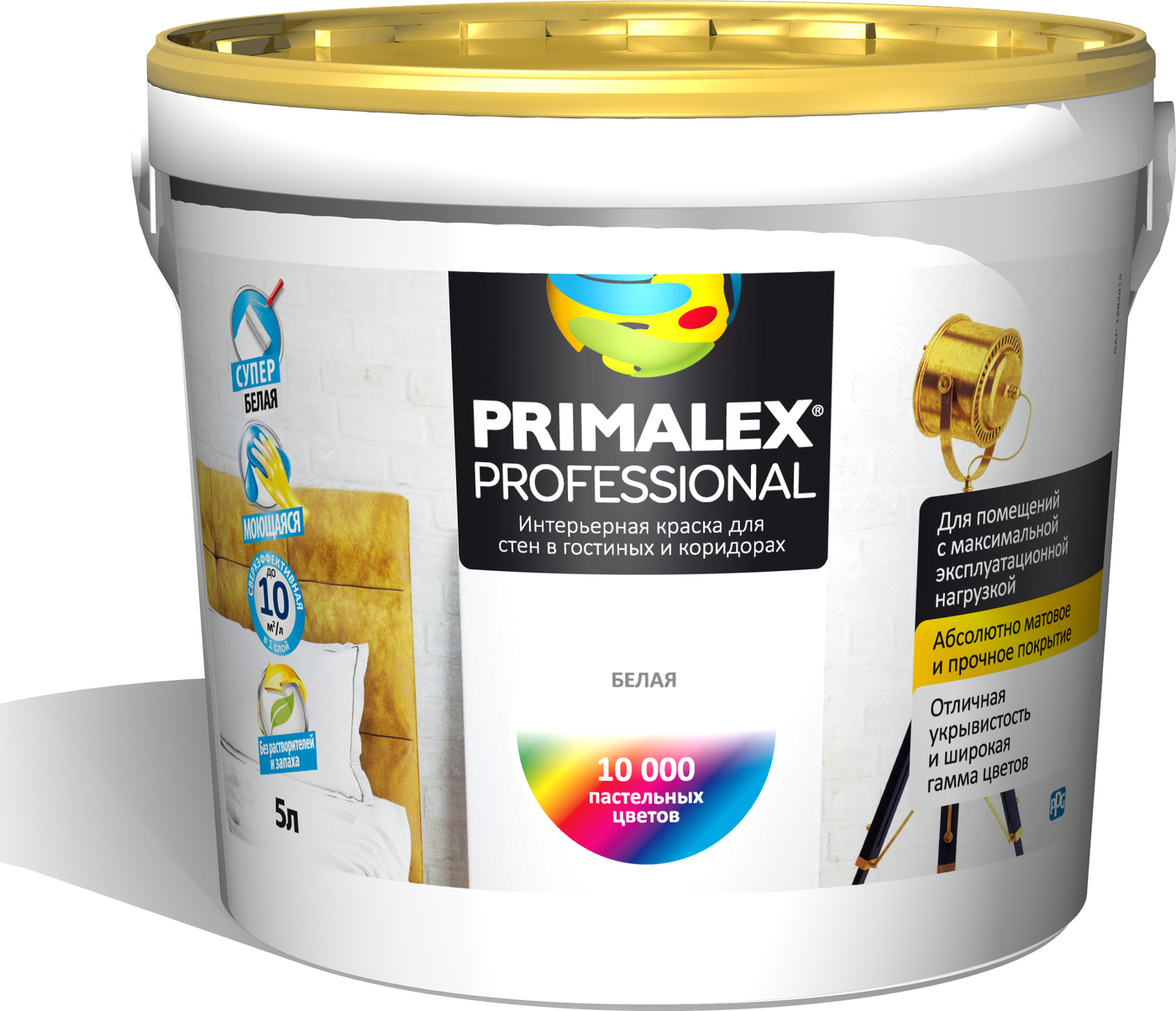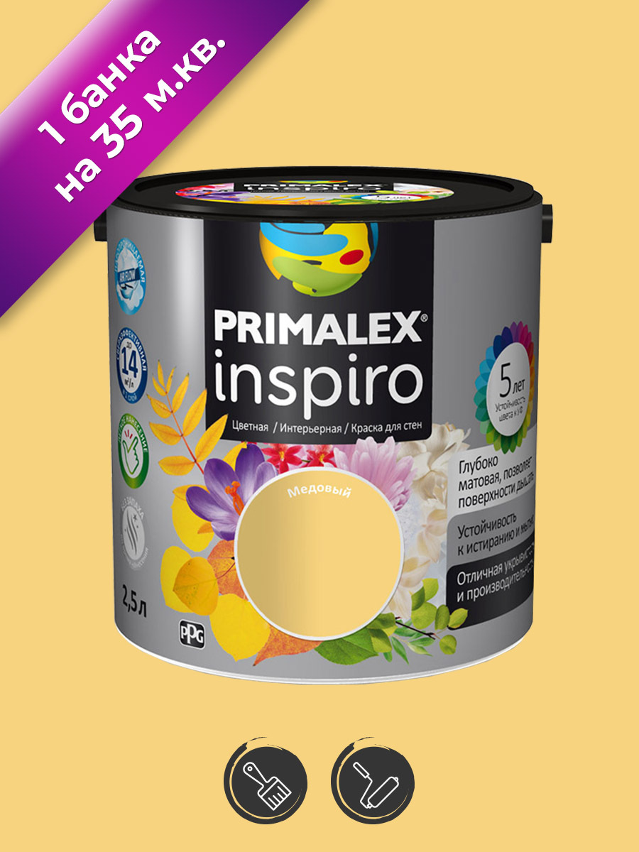 Краска PPG Primalex Быстросохнущая, до 28°, Акриловая, Глубокоматовое покрытие, желтый