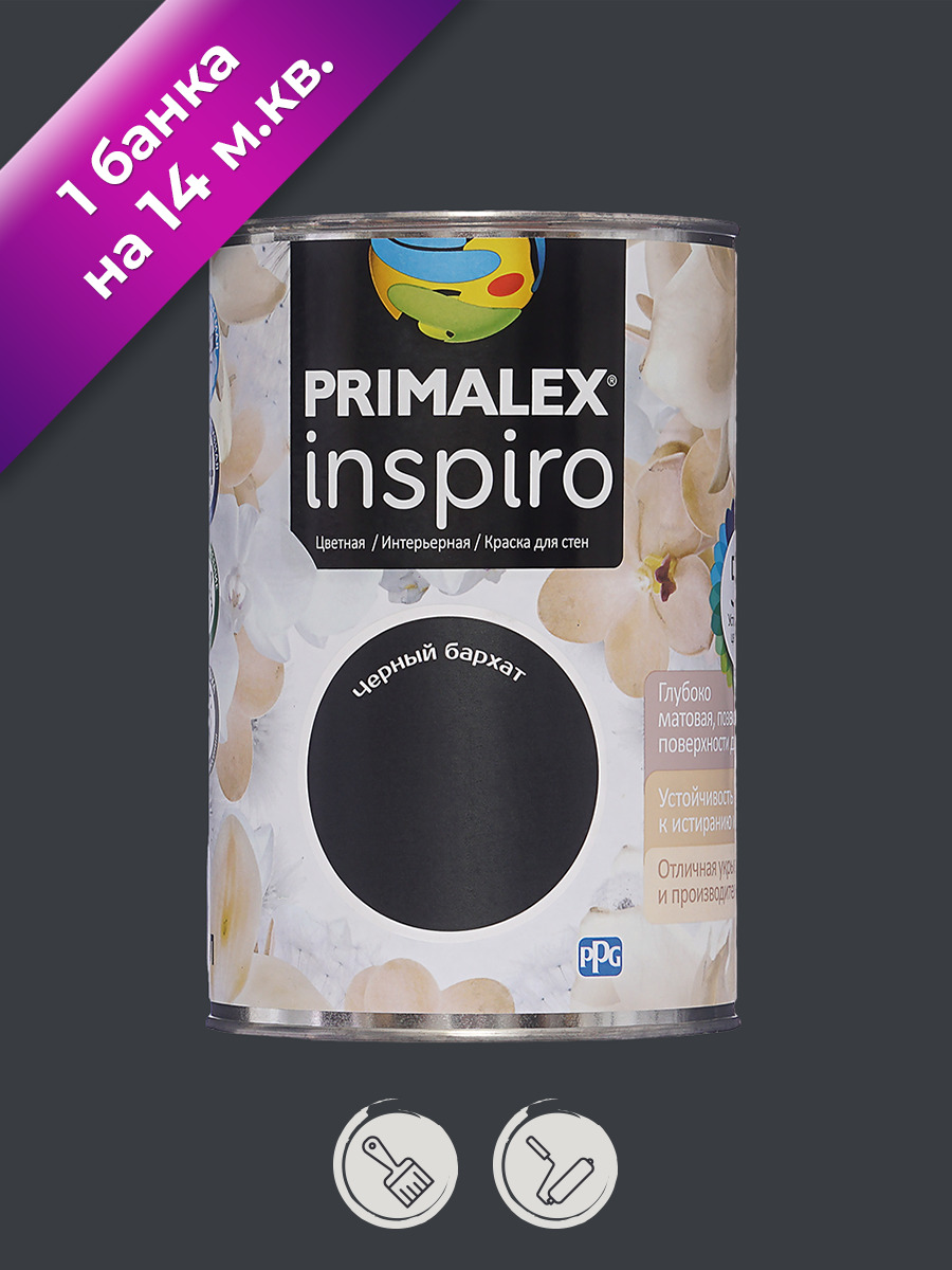 Краска PPG Primalex Быстросохнущая, Акриловая, Матовое покрытие, черный