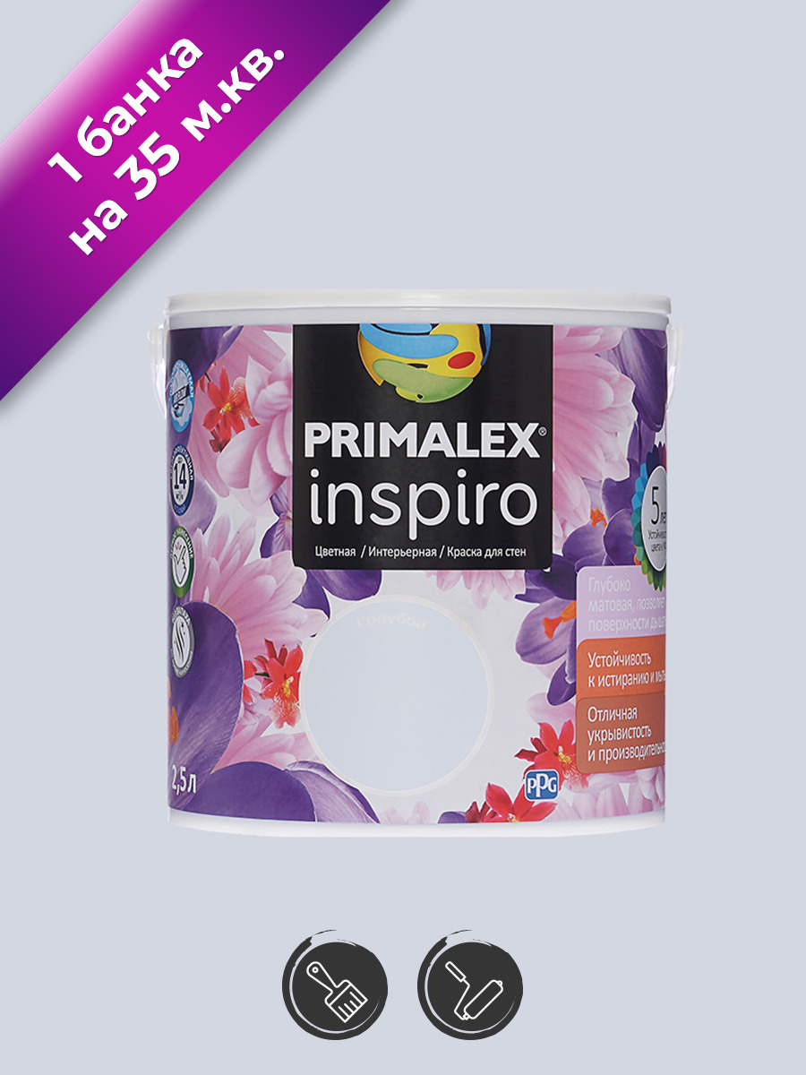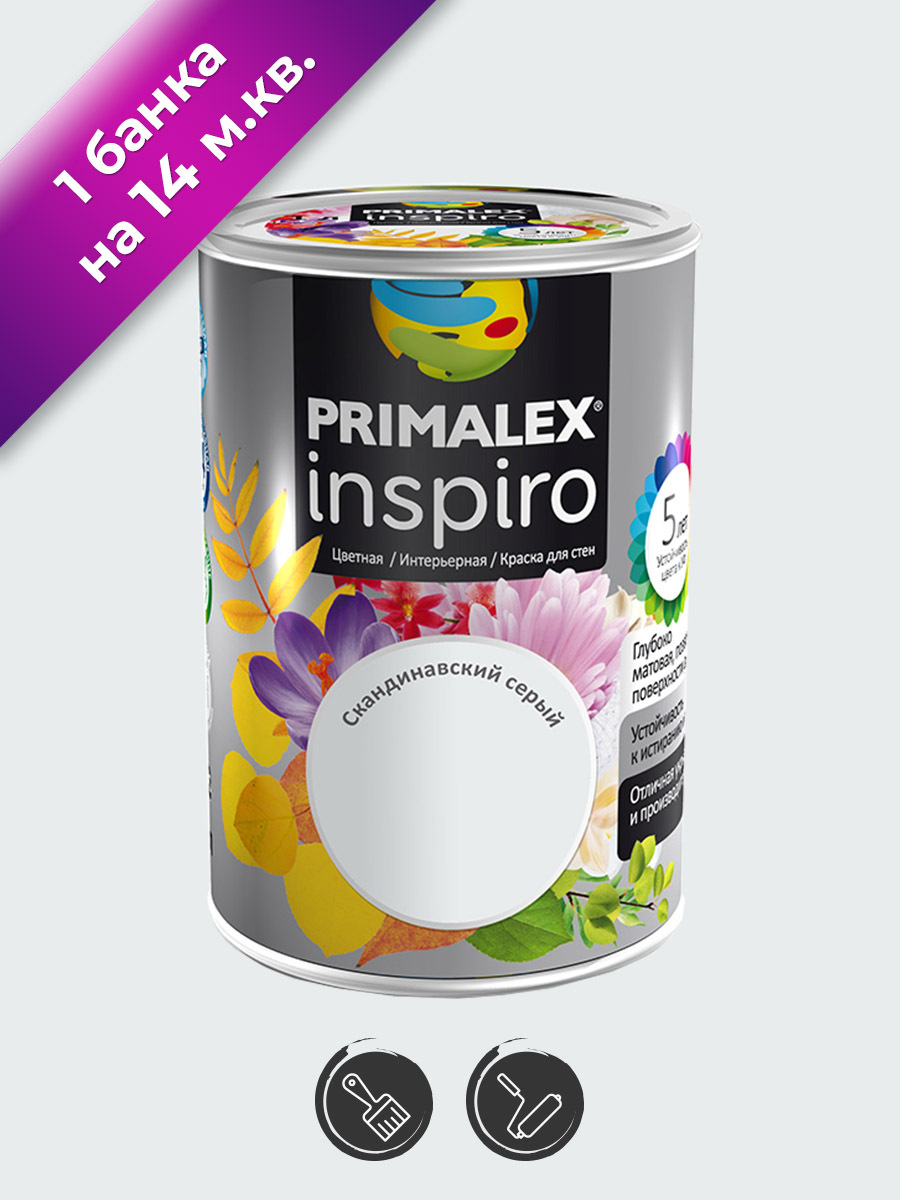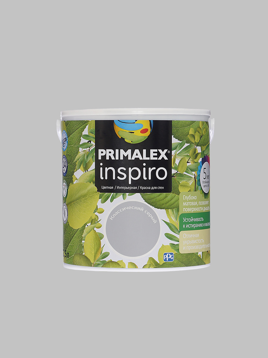 Краска PPG Primalex Быстросохнущая, Акриловая, Матовое покрытие, 2,5 л, светло-серый