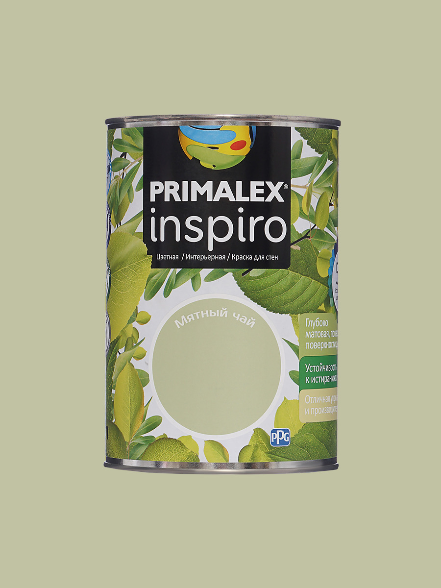 Краска PPG Primalex Быстросохнущая, Акриловая, Глубокоматовое покрытие, 1 л, зеленый