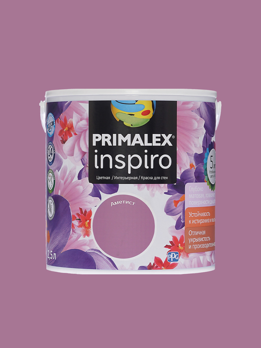 Краска PPG Primalex Быстросохнущая, Акриловая, Матовое покрытие, 2.5 л, темно-розовый