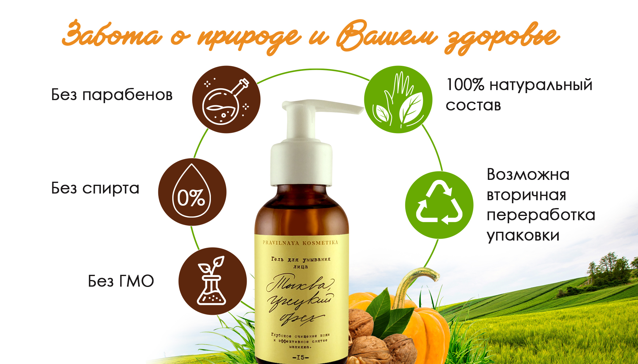 PRAVILNAYA KOSMETIKA гель для умывания Тыква и грецкий орех
