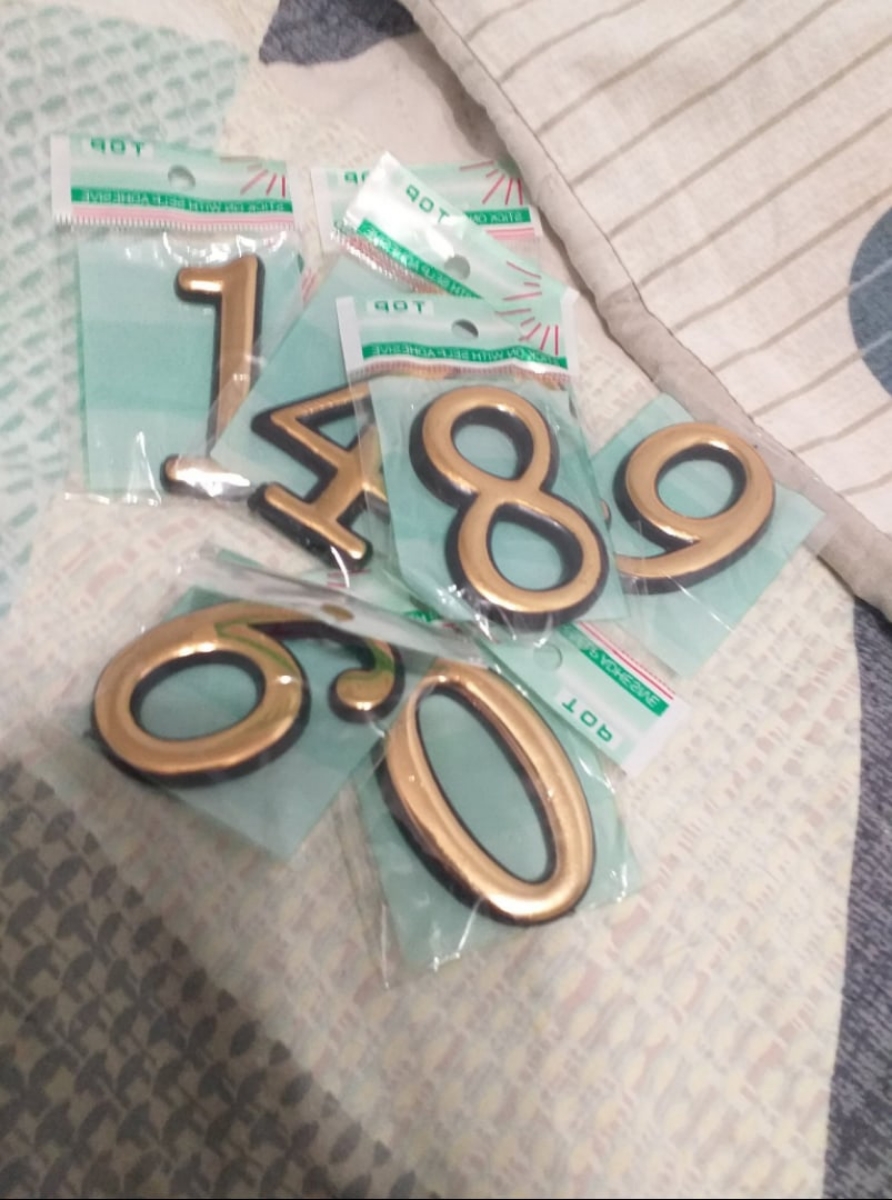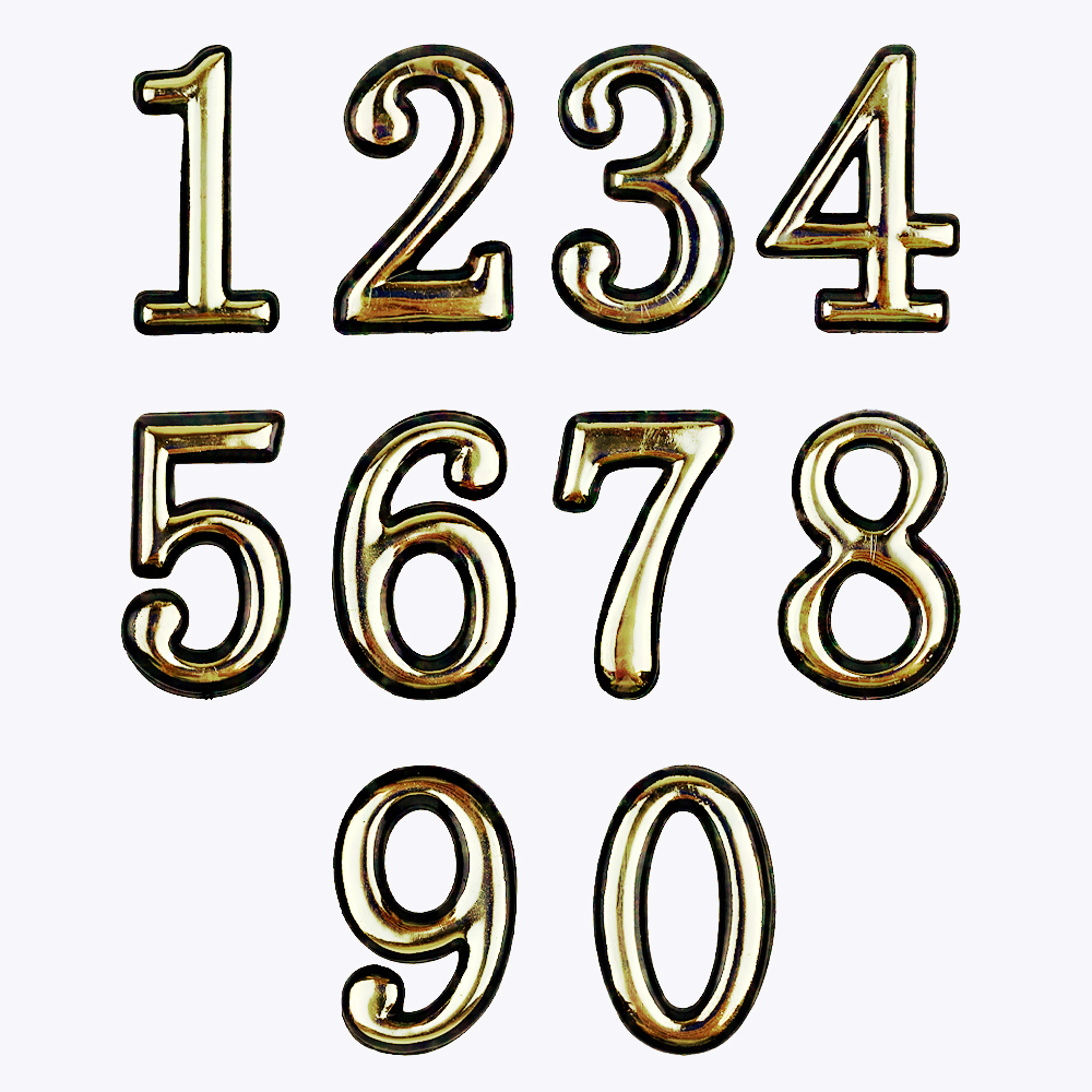 Номера дверные, набор дверных цифр от 0 до 9, цвет: Золото, 55х34 мм, клеевая основа