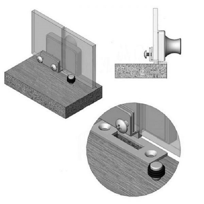 Замок мебельный (витринный) для двух стеклянных дверей с ответной планкой, хром