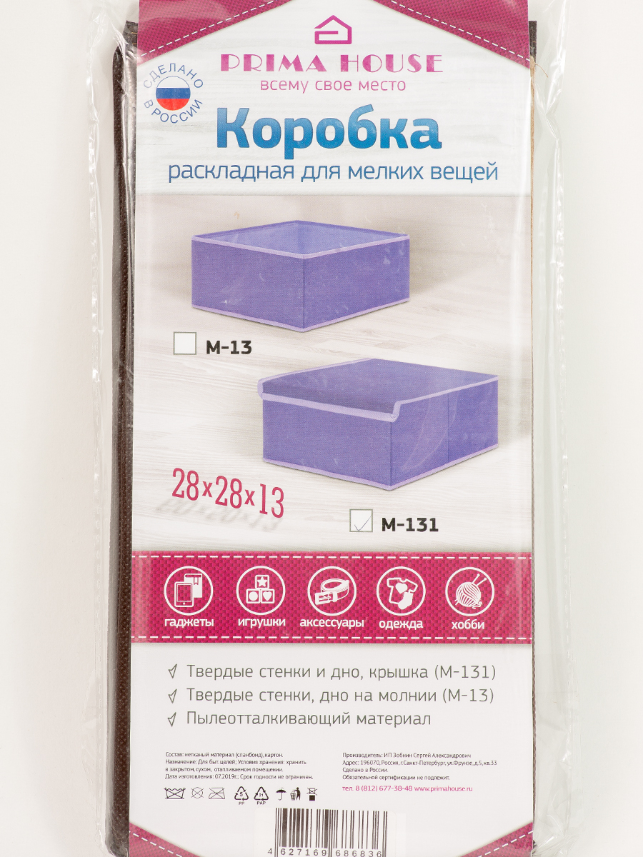 Коробка для хранения Prima House, 28 х 28 х 13 см, 1 шт