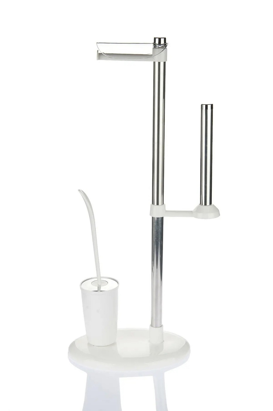 Стойка напольная Primanova Alba, белый, с держателем для туалетной бумаги и ершиком
