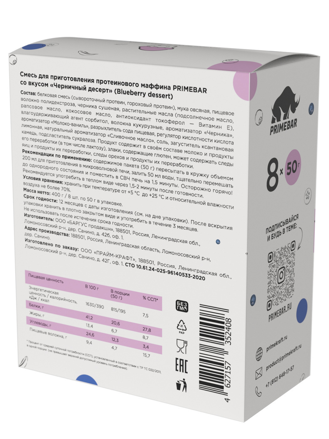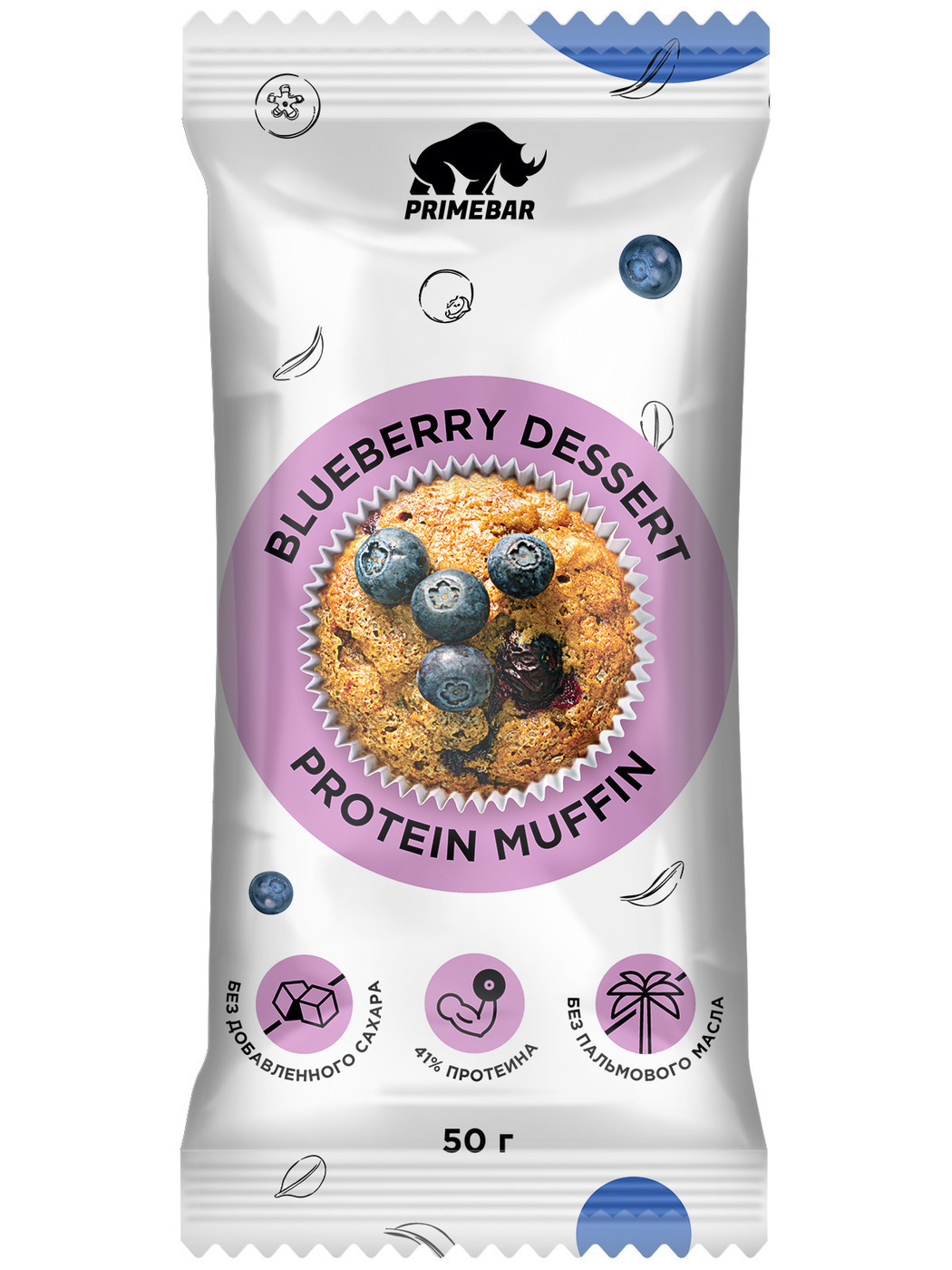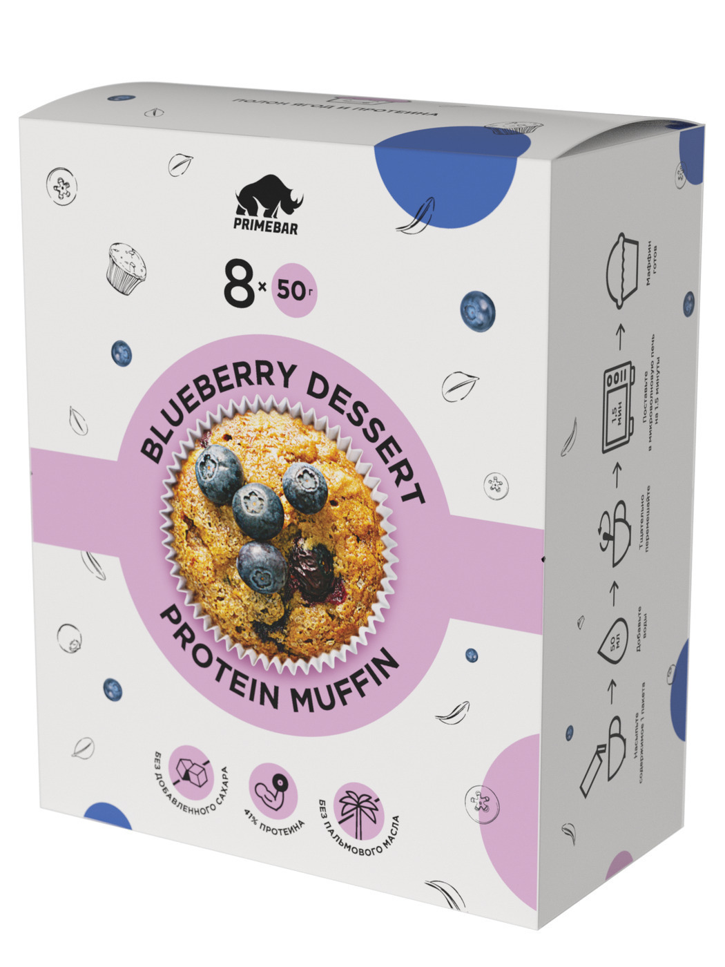 Протеиновый маффин (Смесь для быстрого приготовления) PRIMEBAR Protein Muffin Черничный десерт 8х50 гр.