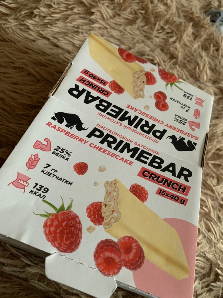 Протеиновый батончик PRIMEBAR Crunch Малиновый чизкейк, 15 шт * 40 гр