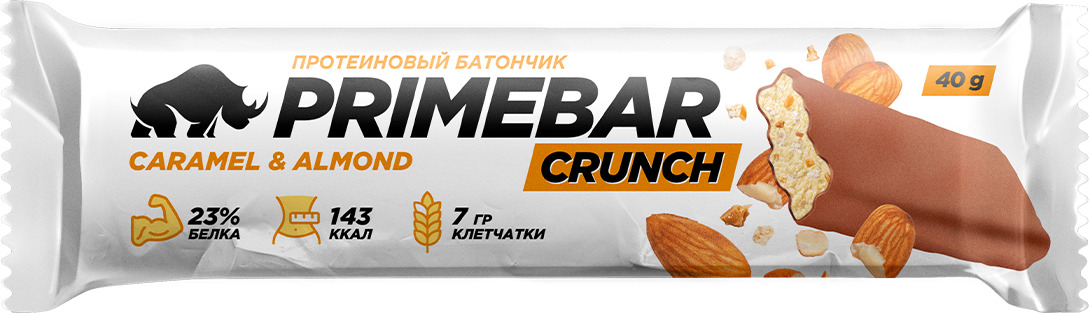 Протеиновый батончик PRIMEBAR Crunch Карамель и миндаль, 15 шт * 40 гр