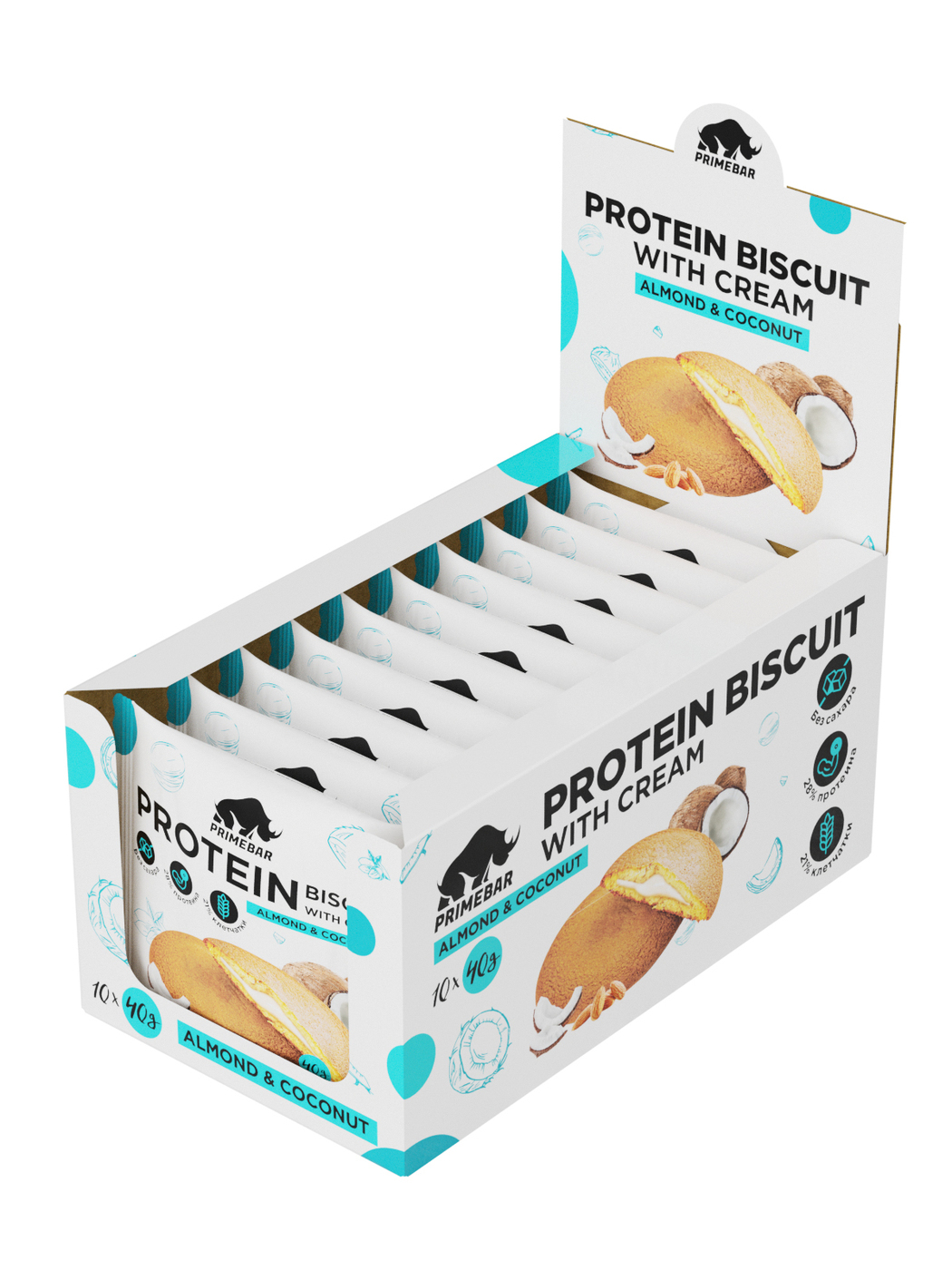 Протеиновое печенье PRIMEBAR PROTEIN BISCUIT, 10 шт*40 гр, вкус: кокос и миндаль
