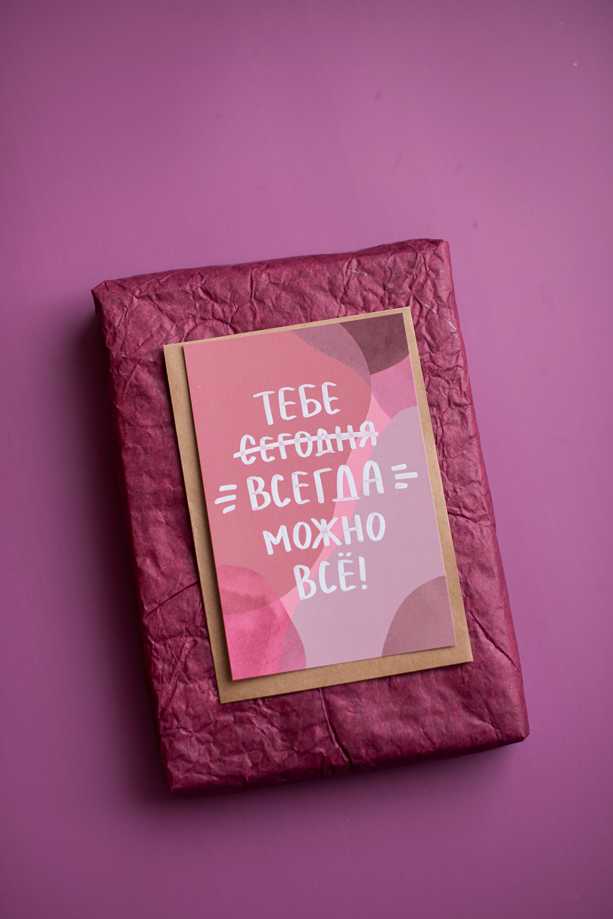 Открытка PrintMyFlowers 10х15 см "Тебе можно всё!" в крафтовом конверте