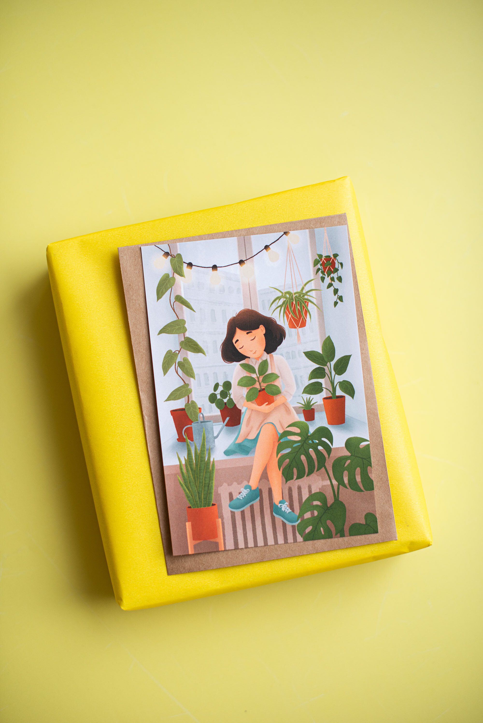 Открытка PrintMyFlowers 10х15 см "Обниматься с растениями" в крафтовом конверте