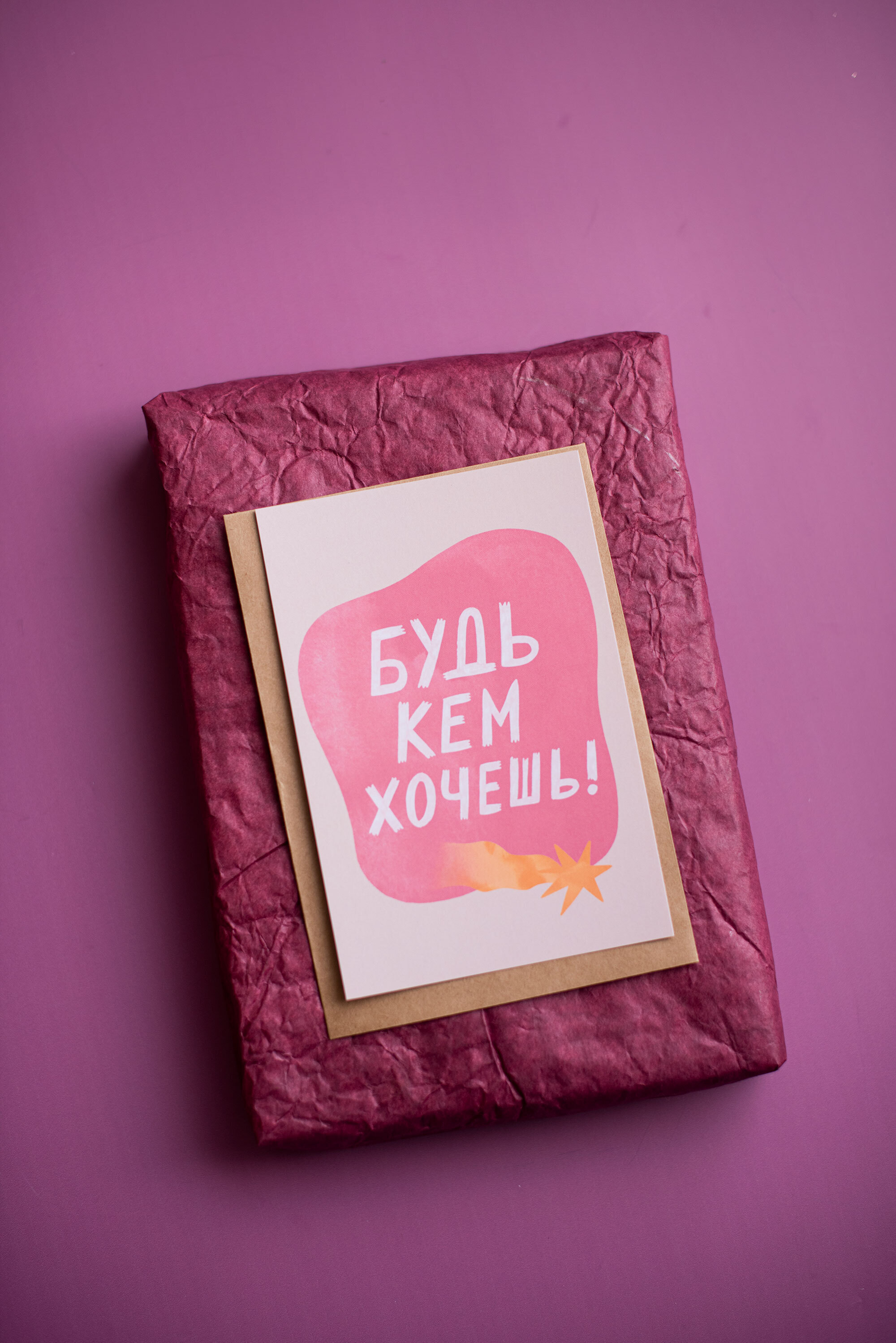 Открытка PrintMyFlowers 10х15 см "Будь кем хочешь" (роз.) в крафтовом конверте