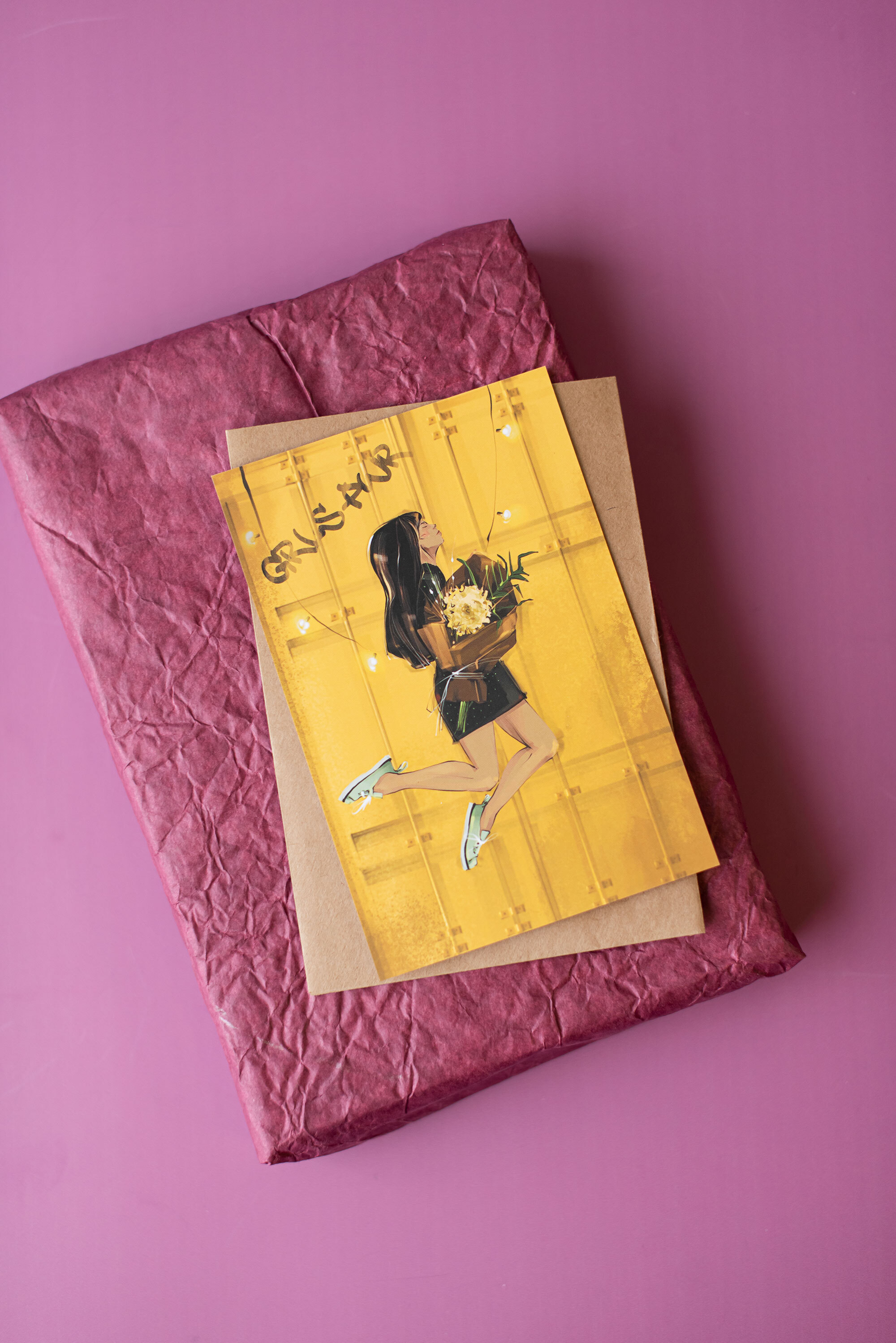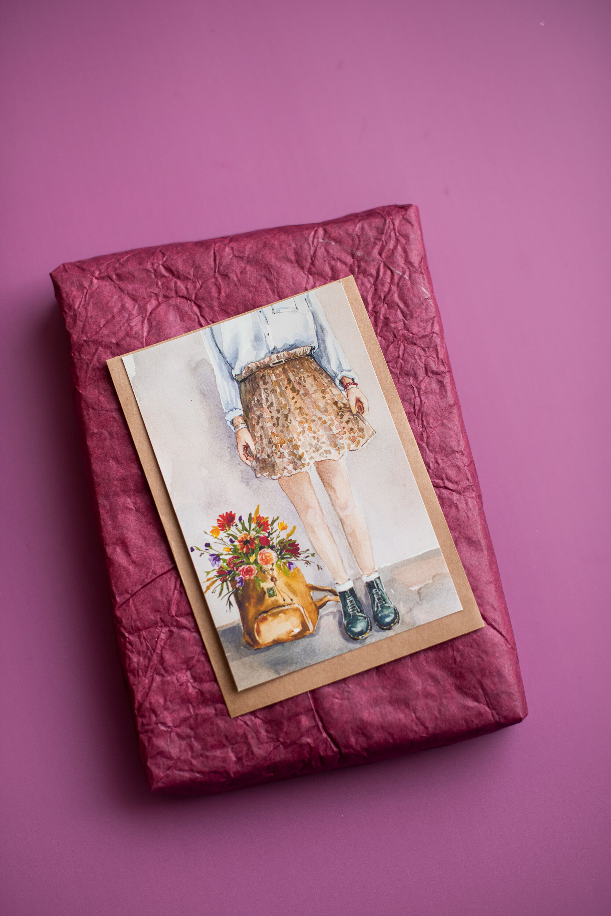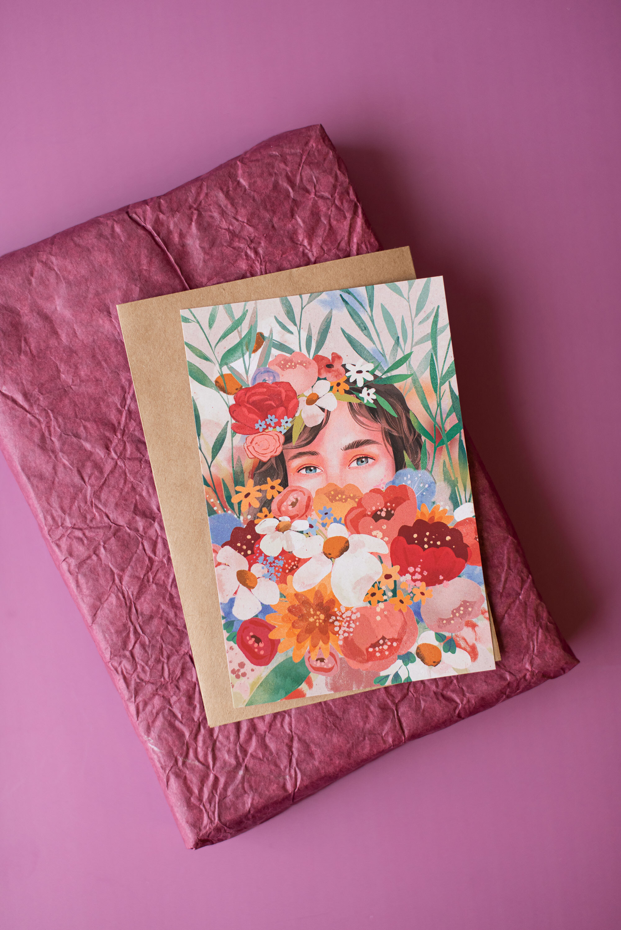 Открытка PrintMyFlowers 10х15 см "Цветы в моей сумке" в крафтовом конверте