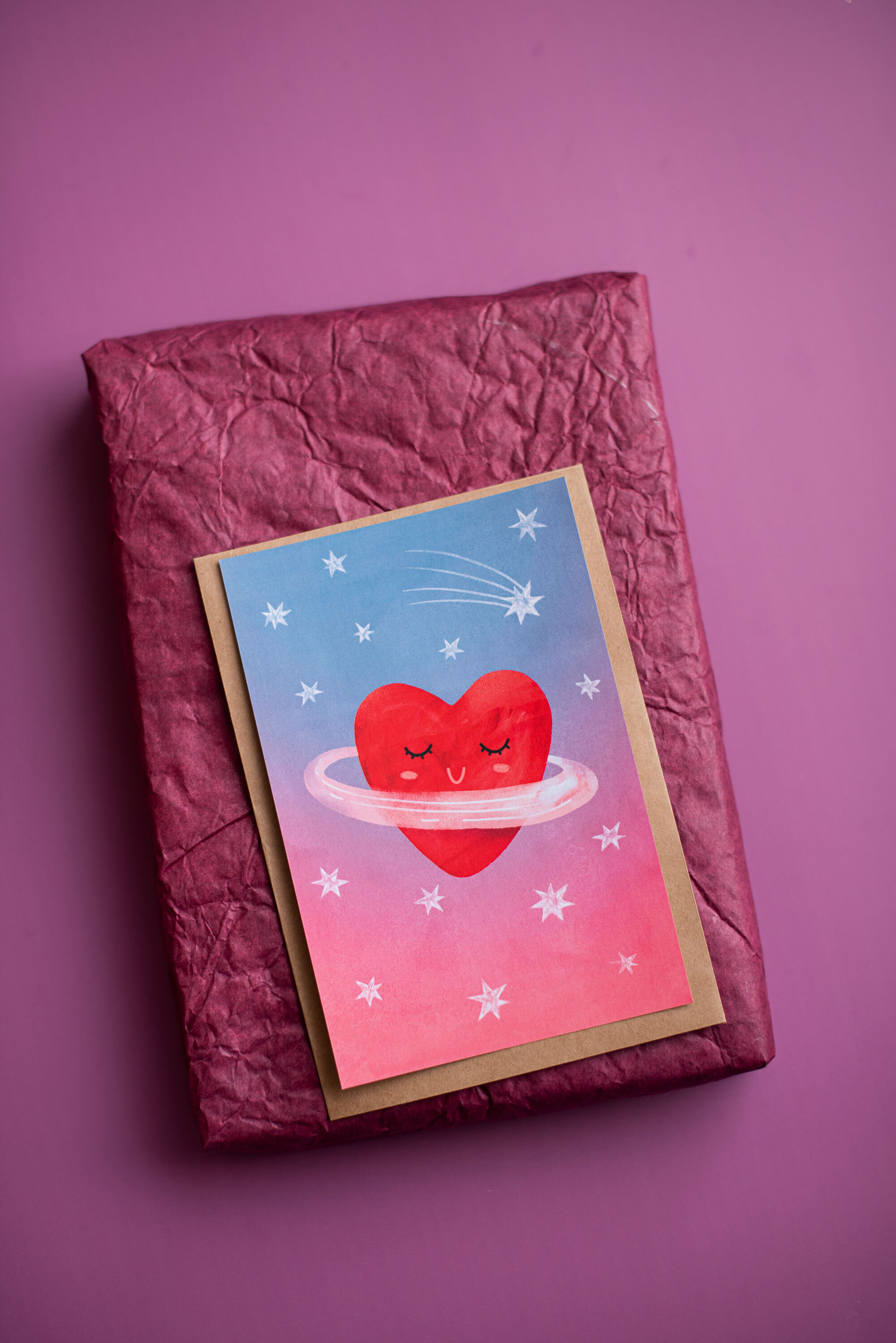 Открытка PrintMyFlowers 10х15 см "Сердце-планета" в крафтовом конверте