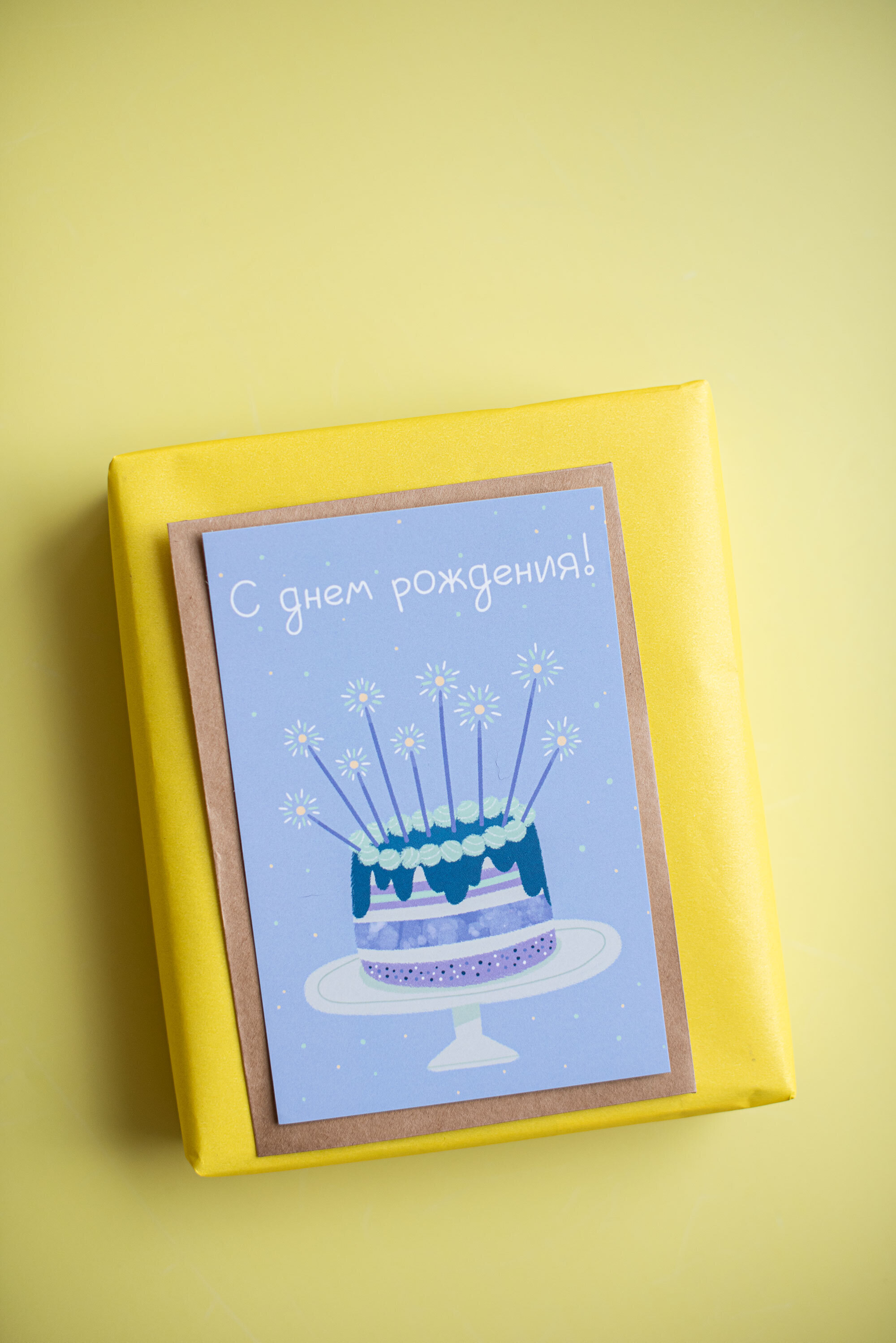 Открытка PrintMyFlowers 10х15 см "С днём рождения" (торт) в крафтовом конверте