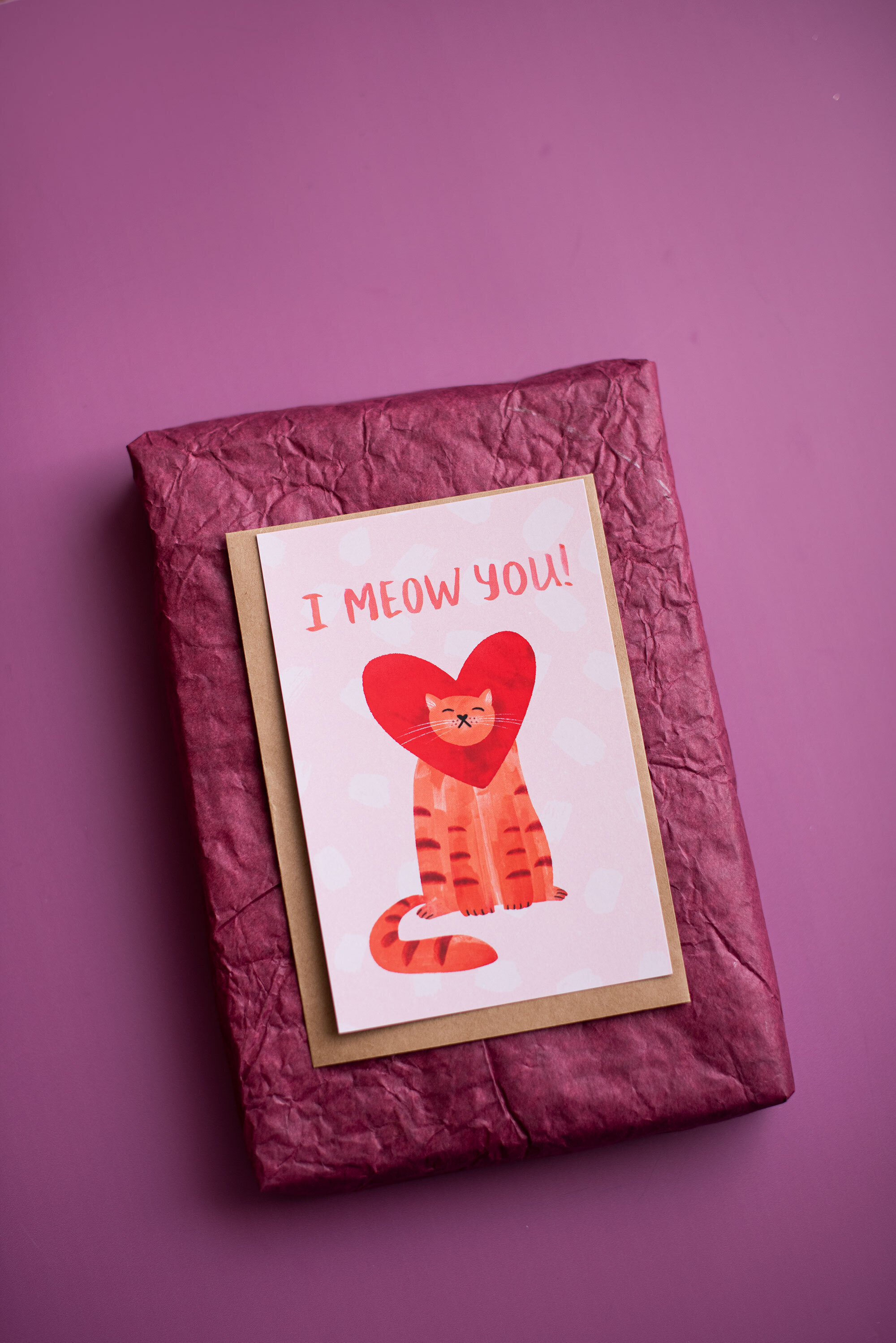 Открытка PrintMyFlowers 10х15 см "I meow you!" в крафтовом конверте
