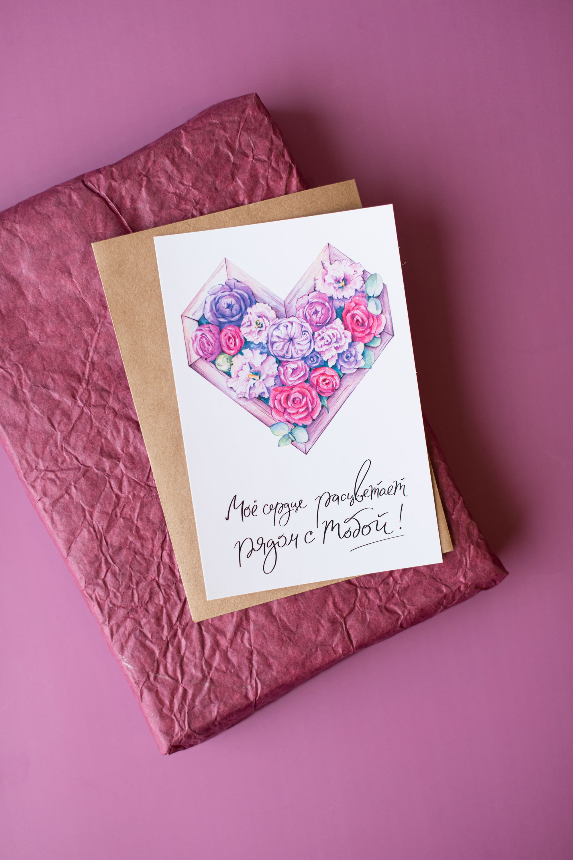 Открытка PrintMyFlowers 10х15 см "Моё сердце расцветает рядом с тобой"