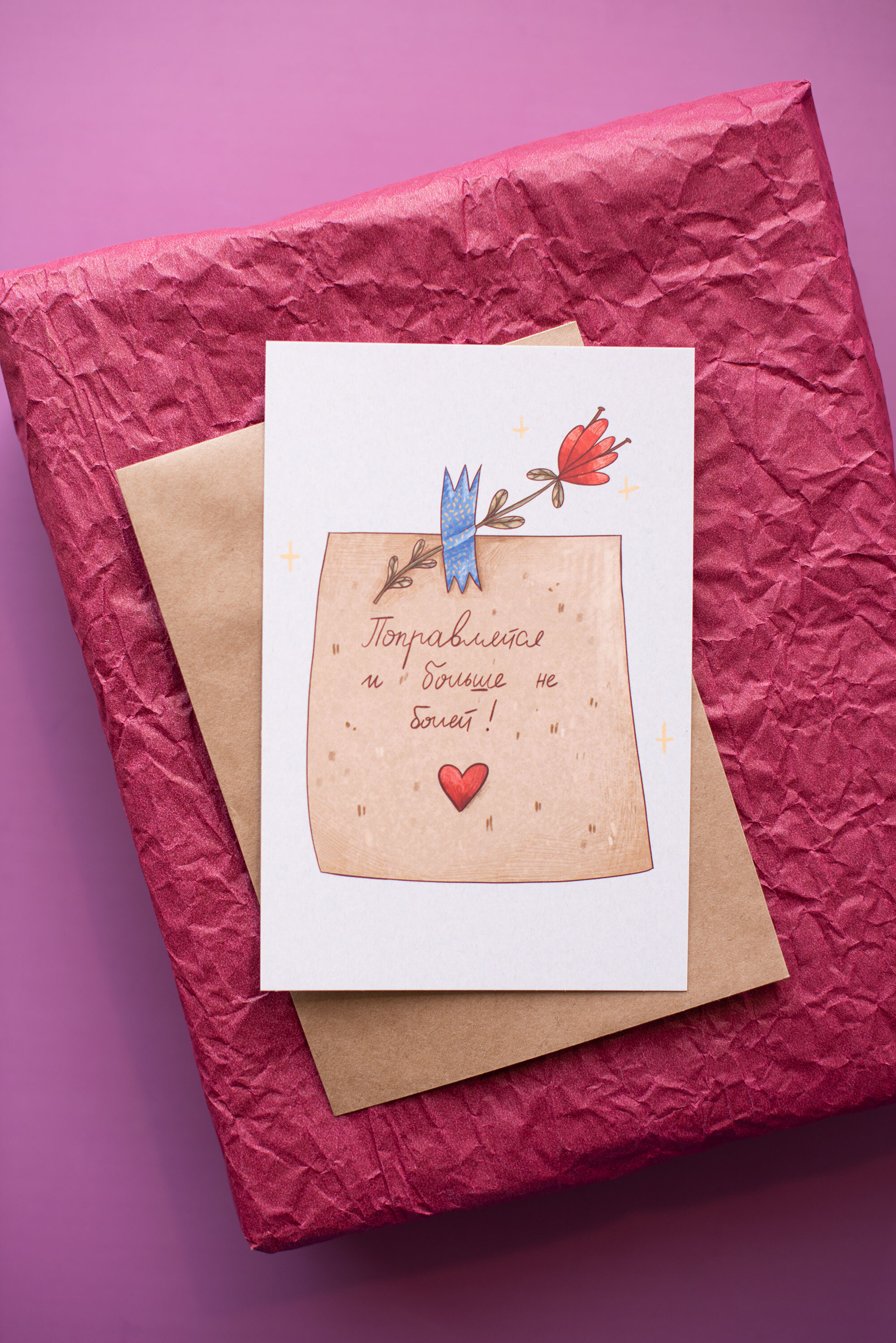 Открытка Print My Flowers 10х15 см в крафтовом конверте 10х15 см "Поправляйся" (стикер)