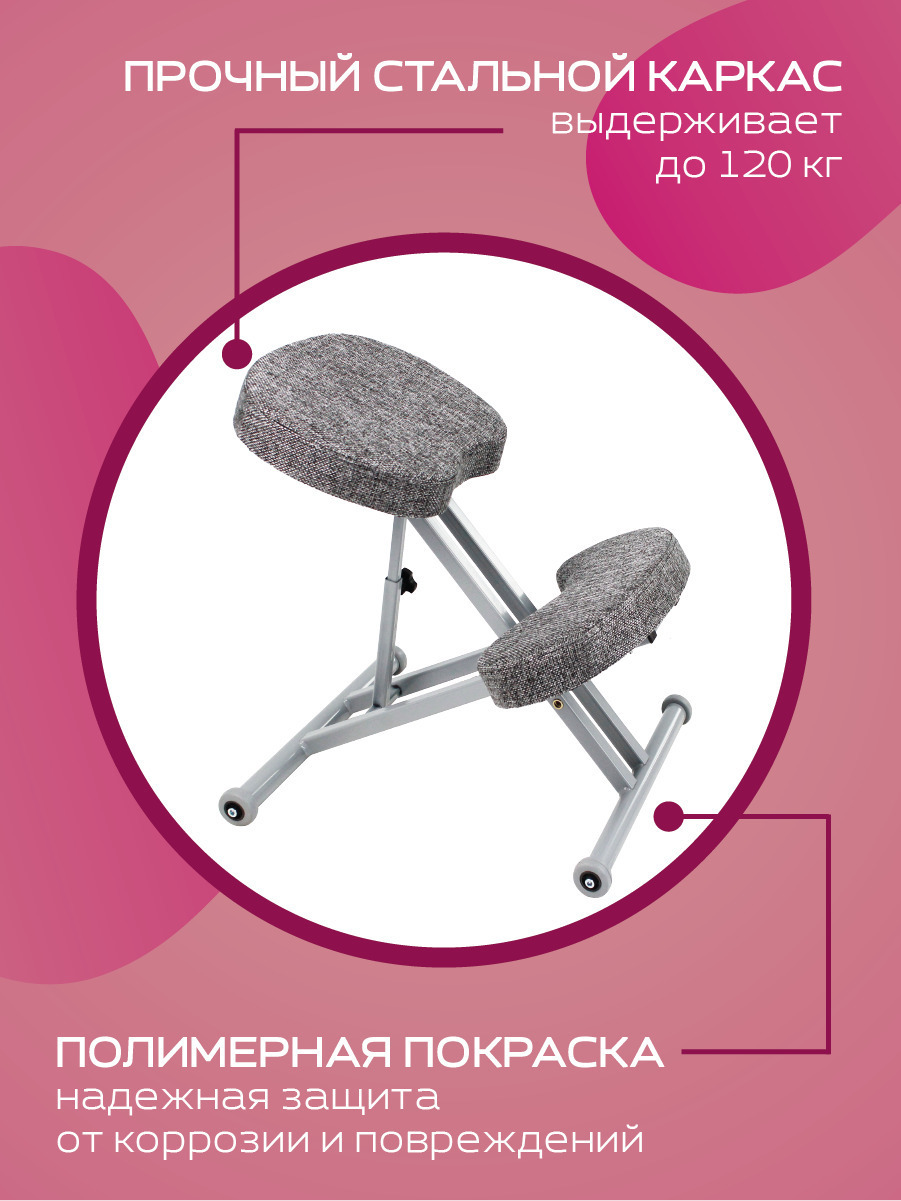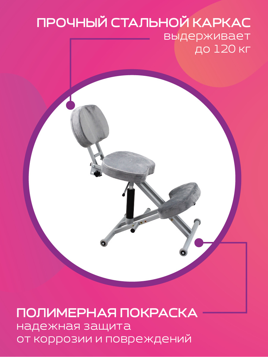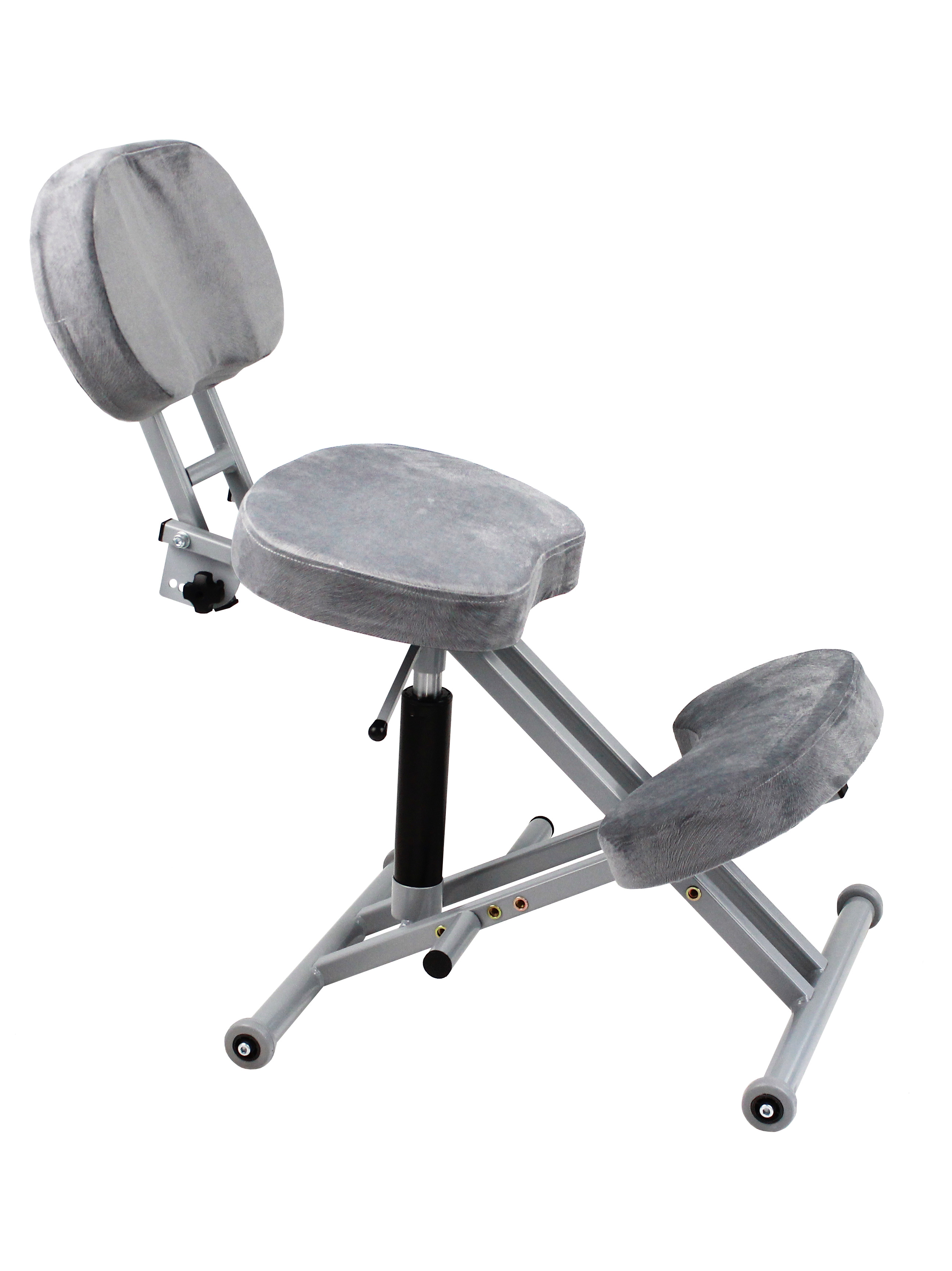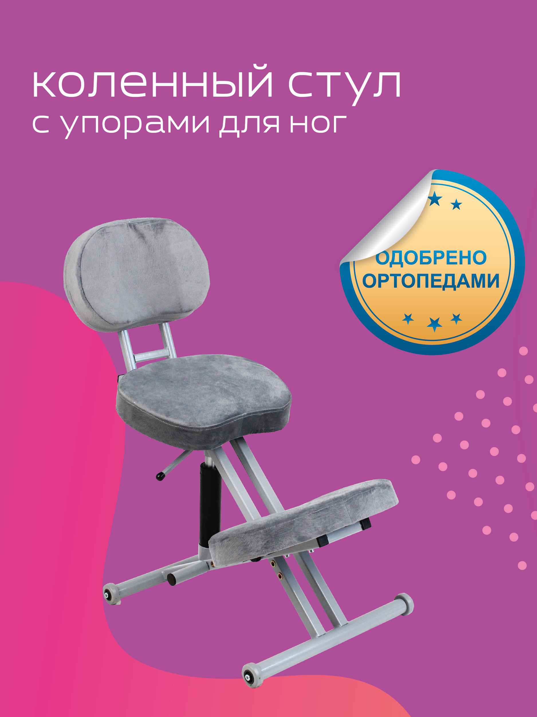 Коленный стул, Ортопедический стул "ProFit" серый велюр + Газлифт + спинка + упоры для ног, 1 шт.