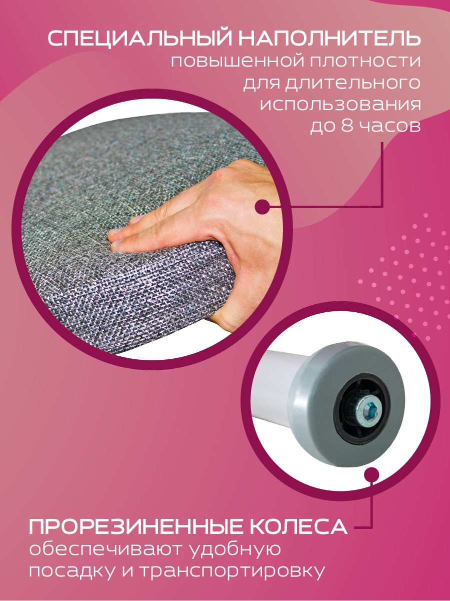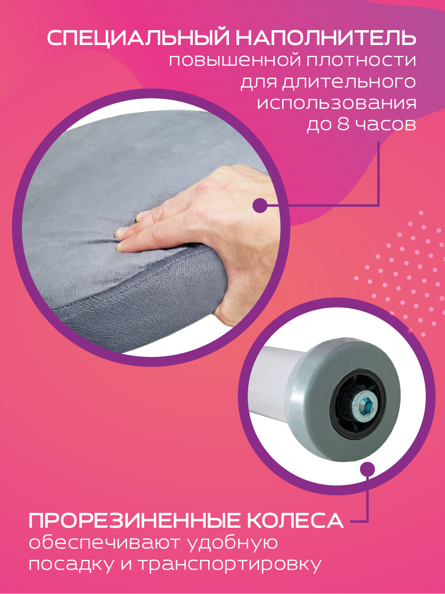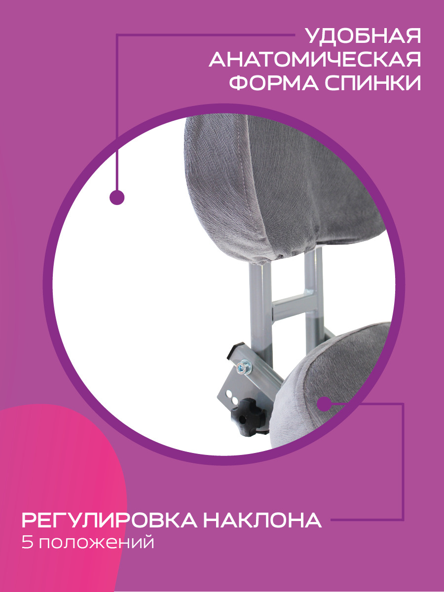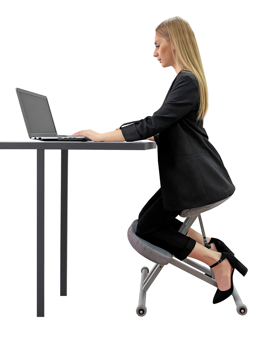 Коленный стул, Ортопедический стул "ProFit" серый велюр + Газлифт + спинка + упоры для ног, 1 шт.