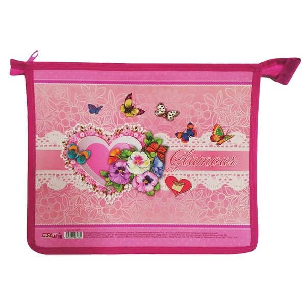 Папка для тетрадей PROFIT А5, пластиковая с цветным уголком, молния сверху, "Самолет"