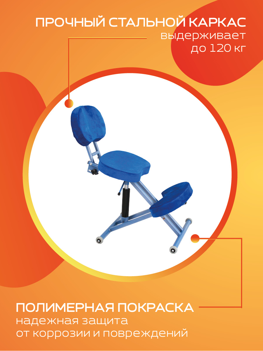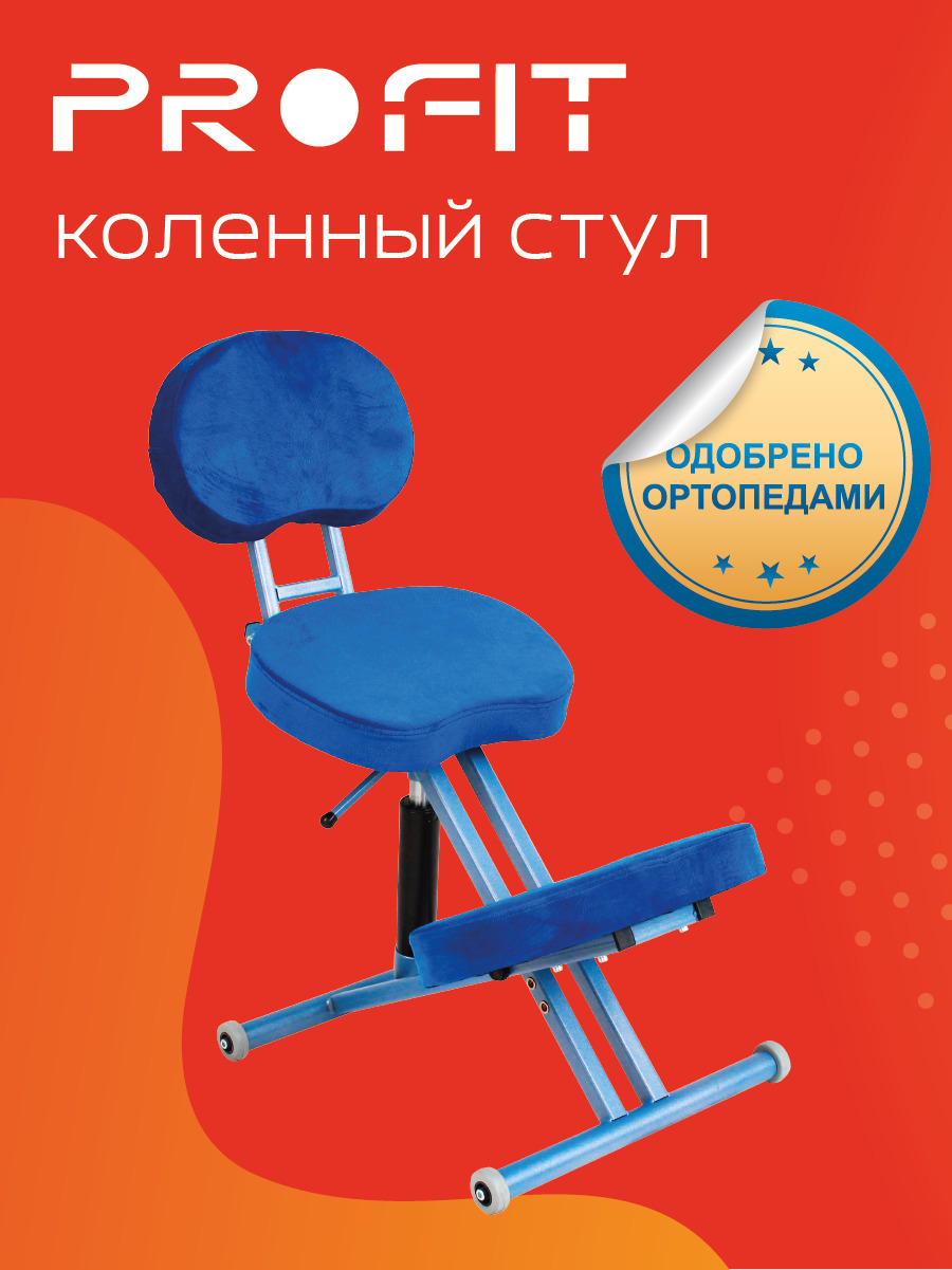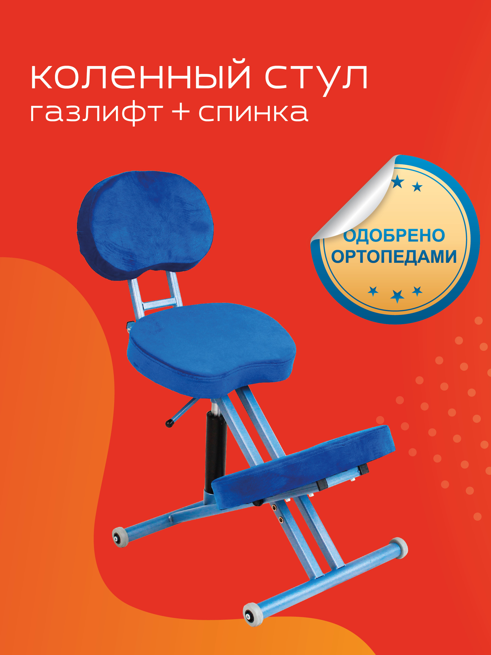 Коленный стул, Ортопедический стул "ProFit" синий + Газлифт + спинка, 1 шт.