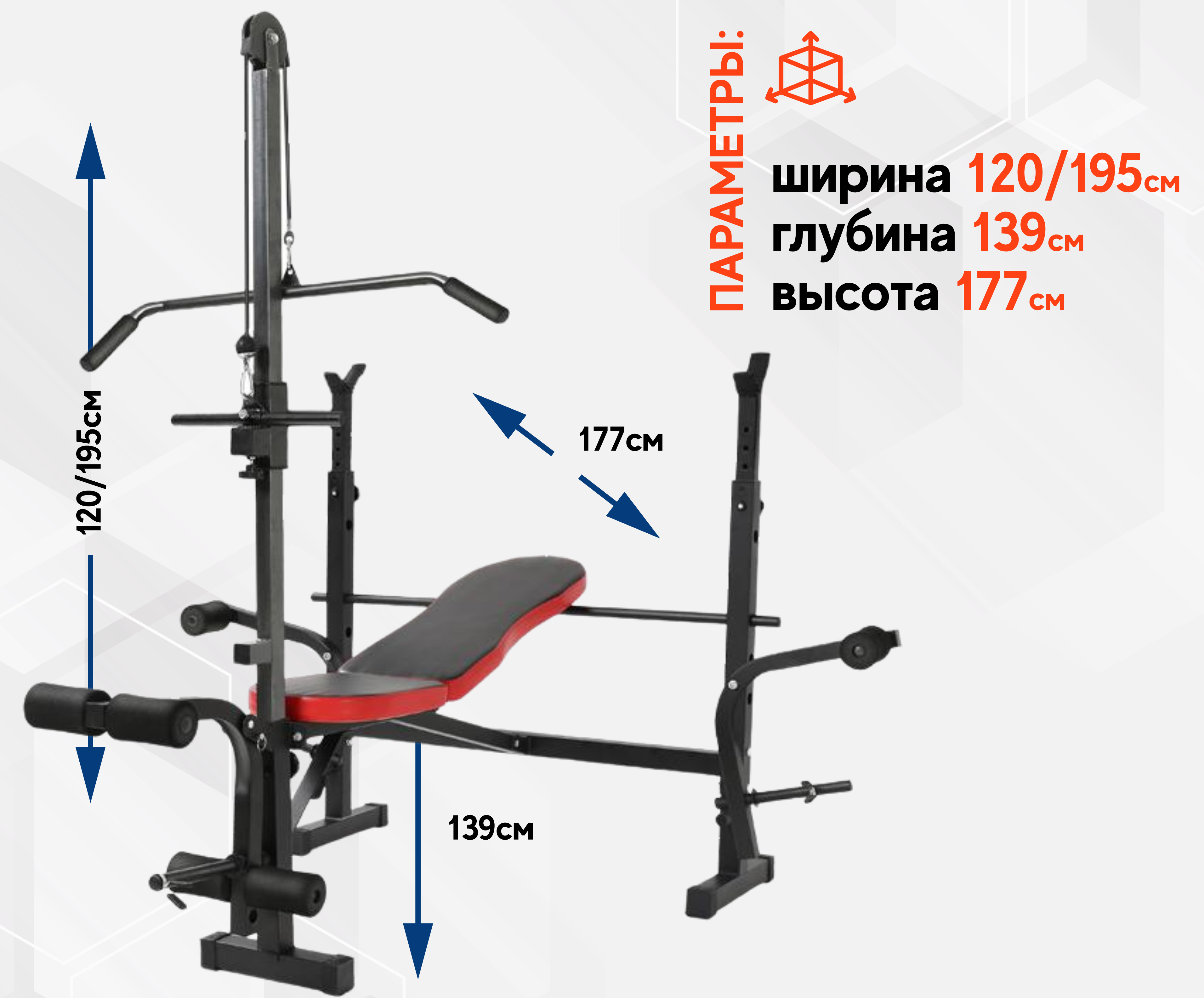 Силовая скамья Profit MDK-759, для тренировок со штангой и гантелями в домашних условиях
