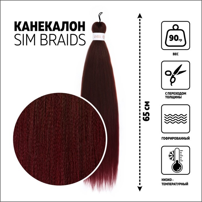 SIM-BRAIDS Канекалон двухцветный, гофрированный, 65 см, 90 гр, цвет русый/вишнёвый(#FR-8)