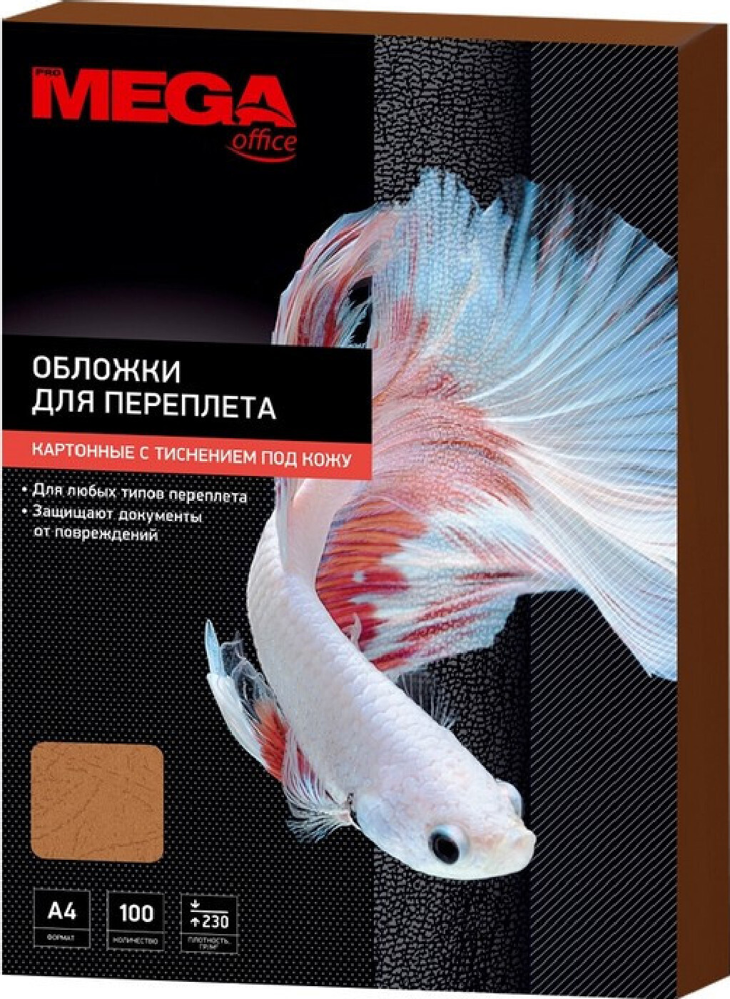 Обложки для переплета картонные Promega office коричневая кожа, А4, 230г, 100 штук в упаковке
