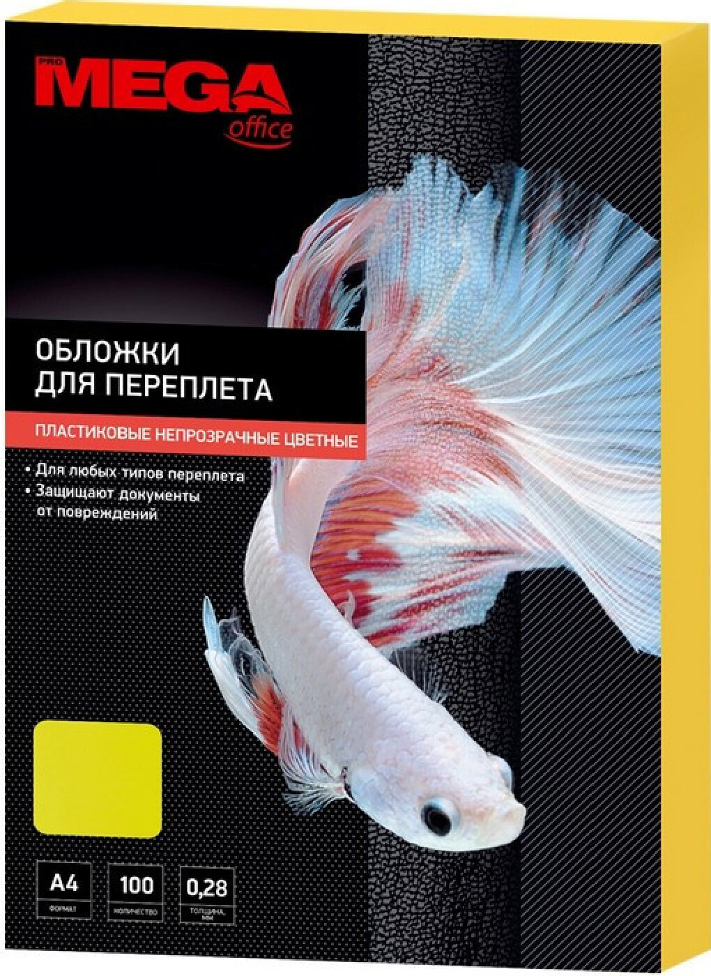 Обложки для переплета пластиковые Promega office желтые, А4, 280 микрометров, 100 штук в упаковке